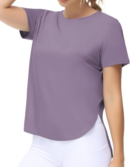THE GYM PEOPLE Women’s Short Sleeve Workout T-Shirts Back Loose Fit Ru…