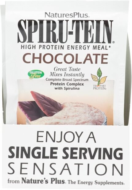 Natures Plus SPIRU-TEIN Shake – Chocolate – 8 Packets, Spirulina Prote…