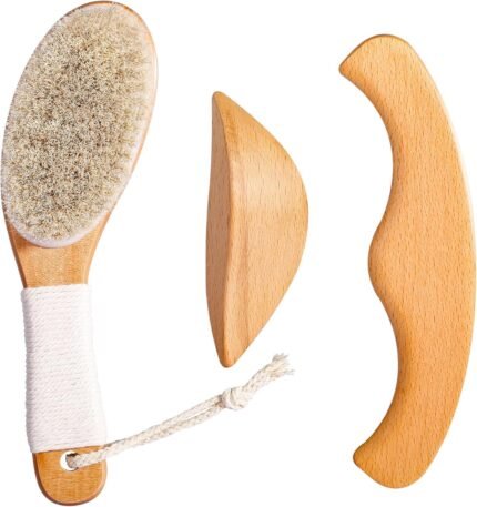 Horsehair Dry Brushing Body Brush Set for Lymphatic Drainage – Non-Sli…
