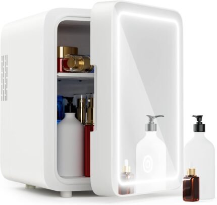 Skincare Fridge – Mini Fridge with Dimmable LED Mirror (4 Liter/6 Can)…