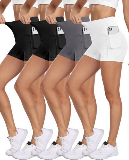NORMOV 4 Packs Spandex Shorts for Women with Pockets, 3” High Waisted…