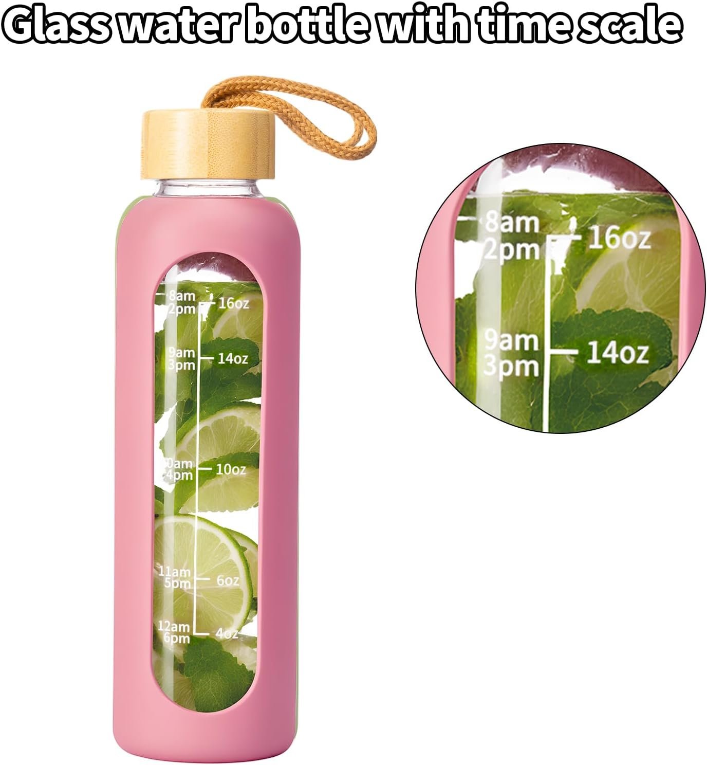 Water Bottle with Time Marker: Glass water bottles are equipped with convenient hour time markers. This reusable glass water bottle helps track daily water intake and motivates you to easily meet your hydration needs. Our glass water bottles are a must-have for people of different professions.