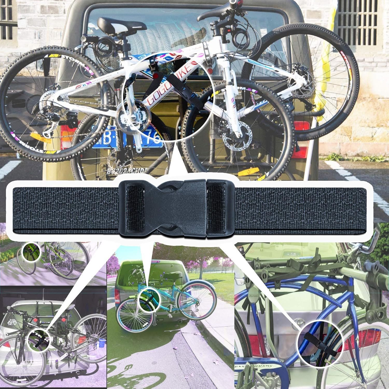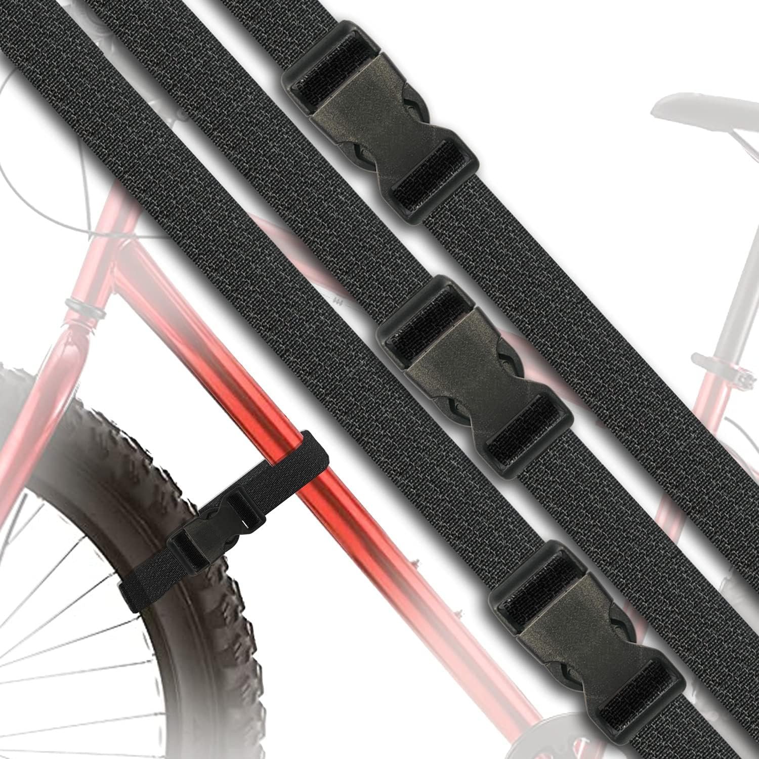 Upgraded Lenth Design:The bicycle wheel straps with supper 40” length(3 PACK) that are perfect to work with a wide range of bicycle style and sizes, and the bonding length provides sufficient grip for maximum stabilizes.