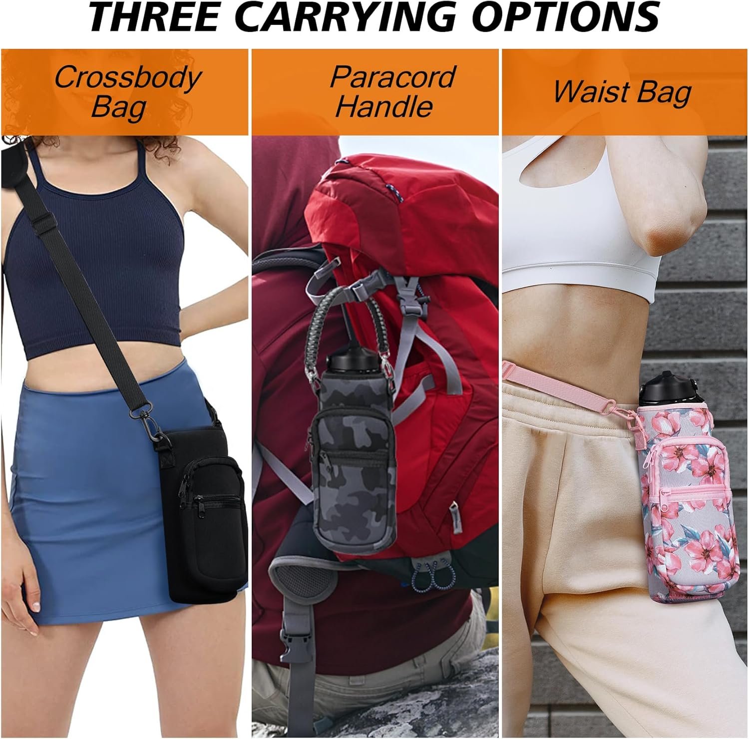 【Large Capacity】Our water bottle carrier bag is suitable for various bottles for the most 16-40 oz water bottle, such as Hydro Flask, Thermo Flask, Contigo, The Coldest Water and other brands. The drawstring design holds the bottle snugly and securely.