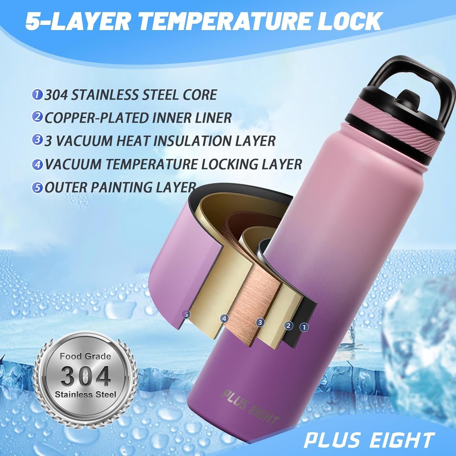 🏃🏻♀️💧【PREMIUM 18/8 STAINLESS STEEL】 : The insulated water bottle is made of 18/8 stainless steelwith double-walled,it is BPA free and non-toxic. It will never leave a metal taste or rust. And the powder coating exterior finish ensures a better grip, and its wide-mouth opening makes your ice or fruits filling and cleaning easy and fast.