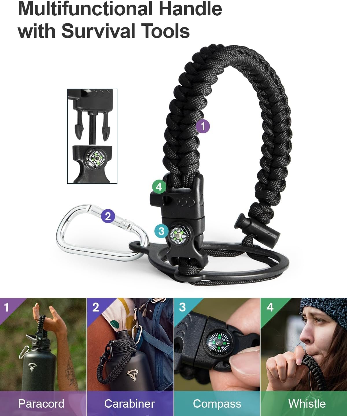 Everything You Need: The package includes a comprehensive accessory set:Topre 64oz/128oz Water Bottle,two lids, a paracord handle, a carrying pouch, two straws and a straw brush.