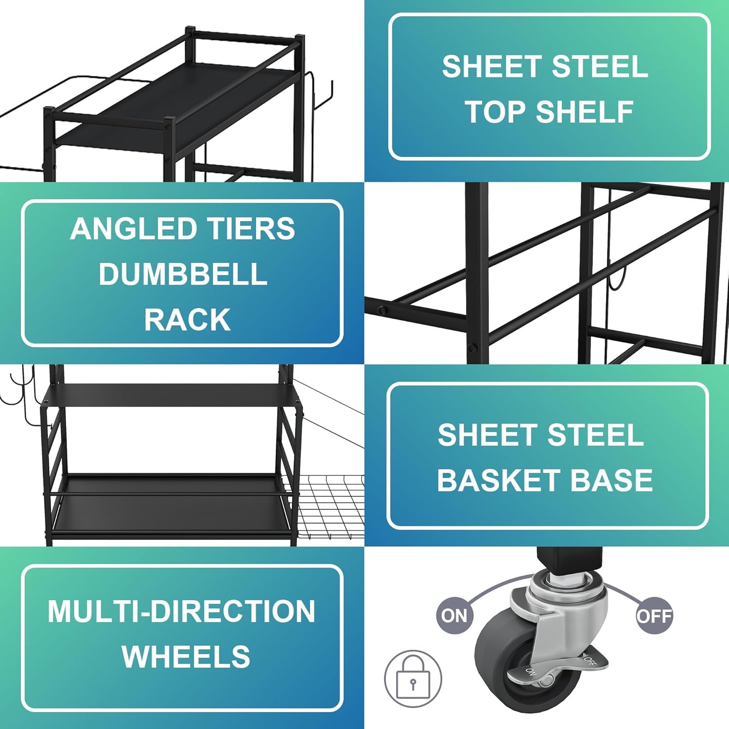 Easy To Assemble And Move: The weight rack is equipped with 4 lockable multidirectional wheels. Convenient to move to any place you want. Ideal for use in garage, home and gym.The dumbbell rack has installation tools, making it can be easily assembled according to the steps of the instructions