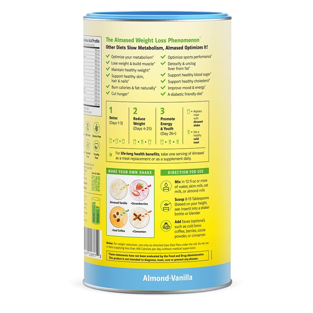 DIET PLAN – For best results, use Almased according to the Almased weight loss diet plan. See instructions in the pamphlet under can lid. Almased also provides customer support to help you get started and achieve your health goals.