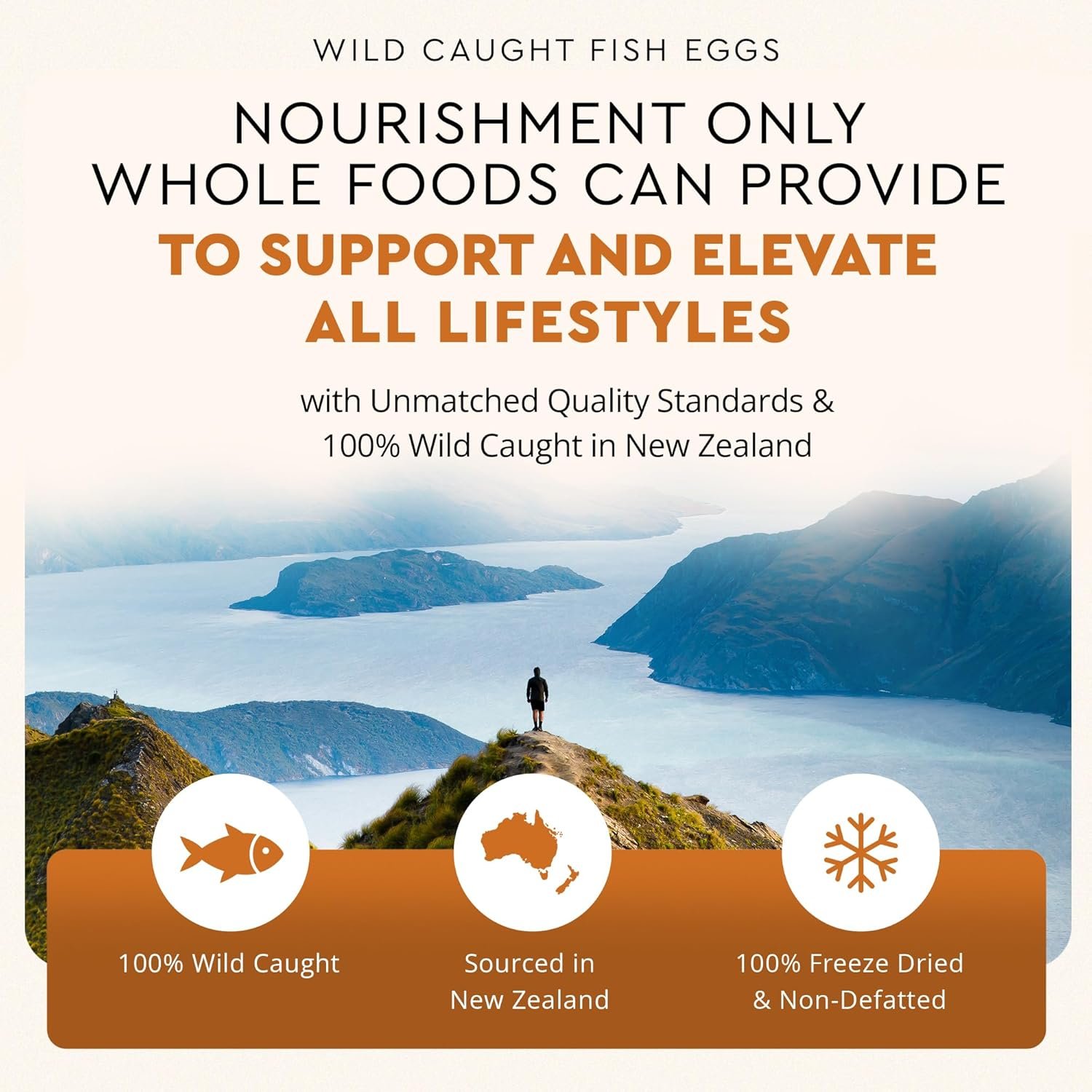 Whole Food Supplement: Freeze dried to preserve essential nutrients and co-factors, these whole fish egg supplements optimally provide Omega 3s, which are found in every cell of the body and help regulate biological functions
