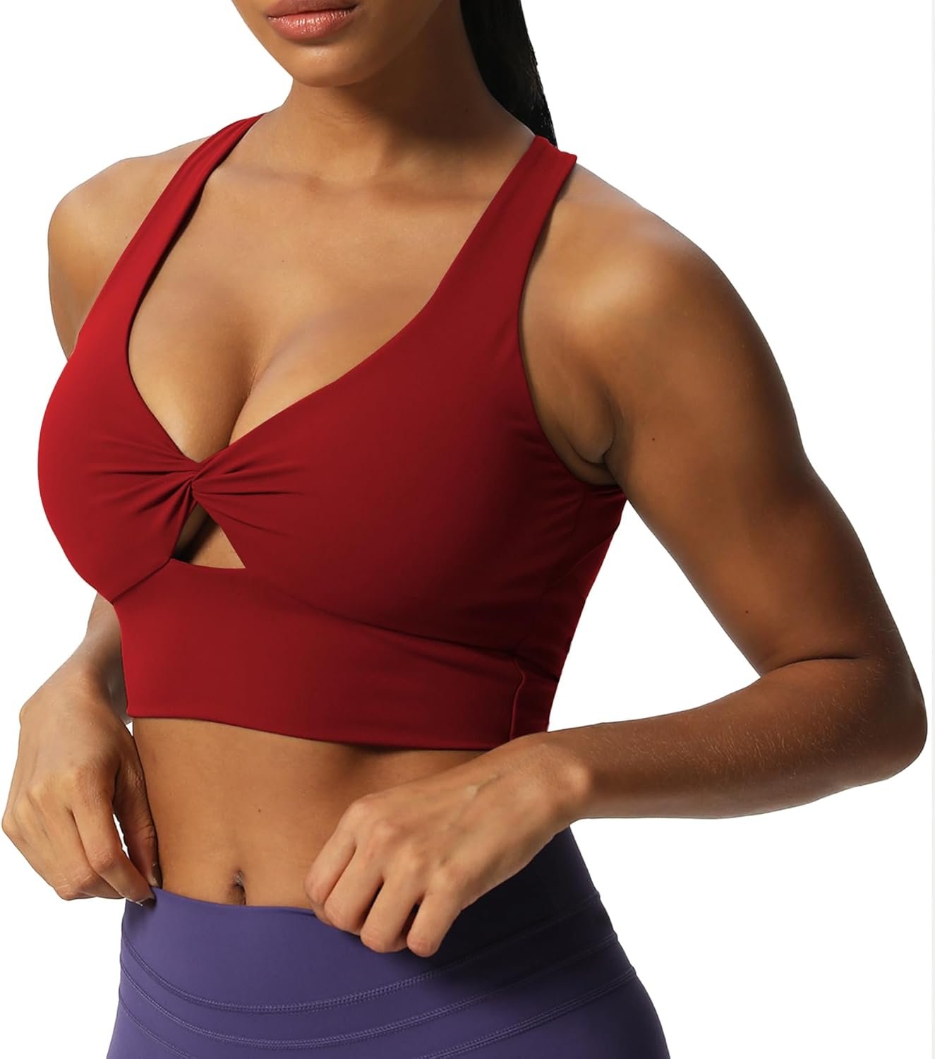 Customers love the sports bra’s style, particularly how it creates a sexy cleavage in the front, and appreciate its soft, buttery feel with good stretch and support. The bra fits well, especially for larger cup sizes, and stays in place during workouts. Customers find it affordable and of good quality, with one customer noting it held up amazingly well. However, customers disagree on the bra’s support level.