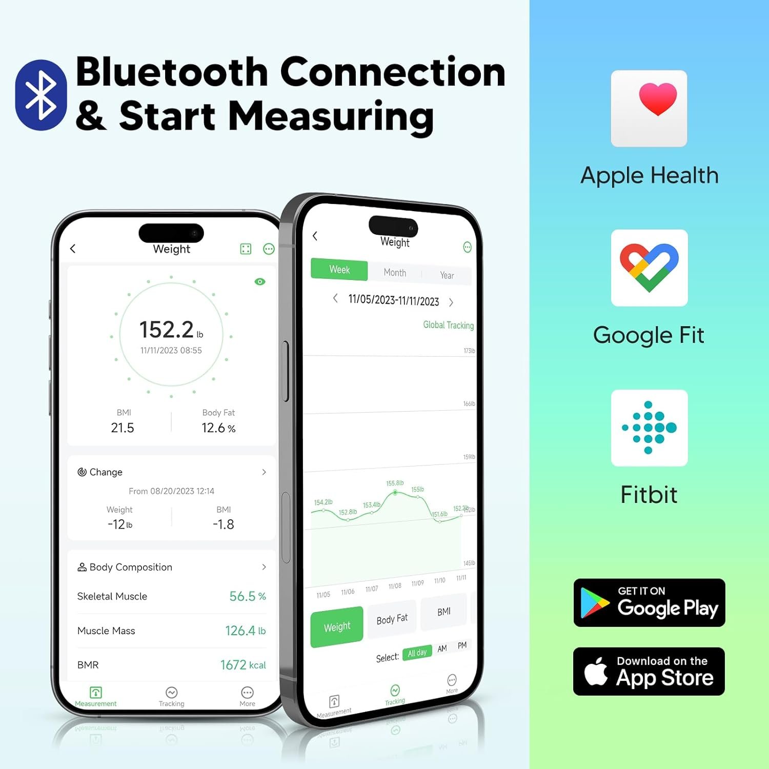User-Friendly App & Multi-User Tracking: Download the Arboleaf App to easily monitor your fitness journey and sync with Apple Health, Google Fit, and Fitbit. This bathroom scale for body weight supports up to 8 users, displaying individual progress on a monthly, weekly, or yearly basis—perfect for families, bodybuilders, and anyone focused on wellness and fitness tracking.