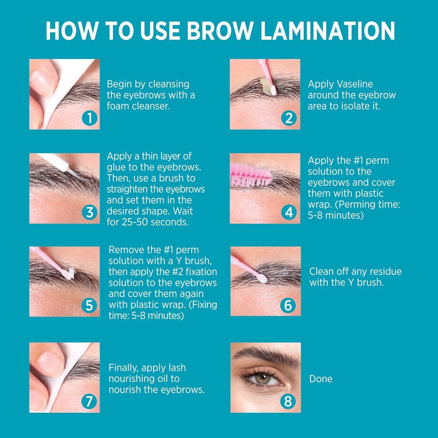 Complete Eyebrow Perming Kit: Our eyebrow perming kit includes everything you need for a professional brow lift at home, featuring perm lotion, fixation lotion, nutrition lotion, cleanser, applicator sticks, and detailed instructions.
