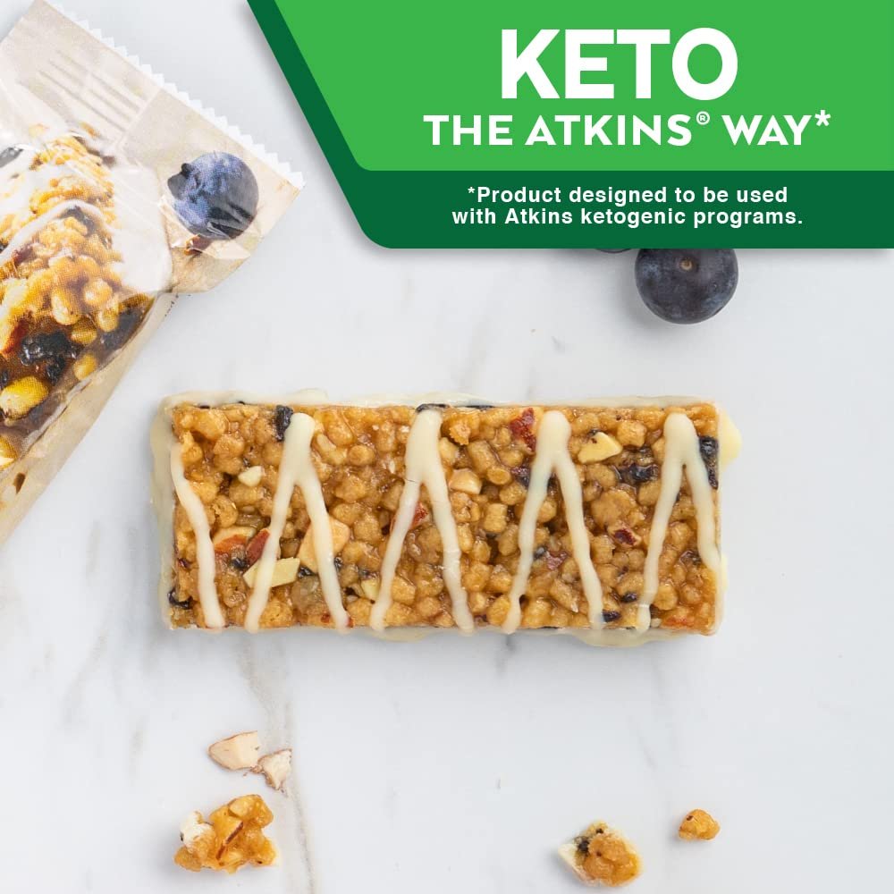 AT HOME OR ON-THE-GO. Atkins Blueberry Greek Yogurt Protein Meal Bars. Enjoy delicious meal bars with 15g of protein, 3g of sugar, and 5g of net carbs per serving* that fit right into your busy schedule. This is Today’s Atkins.