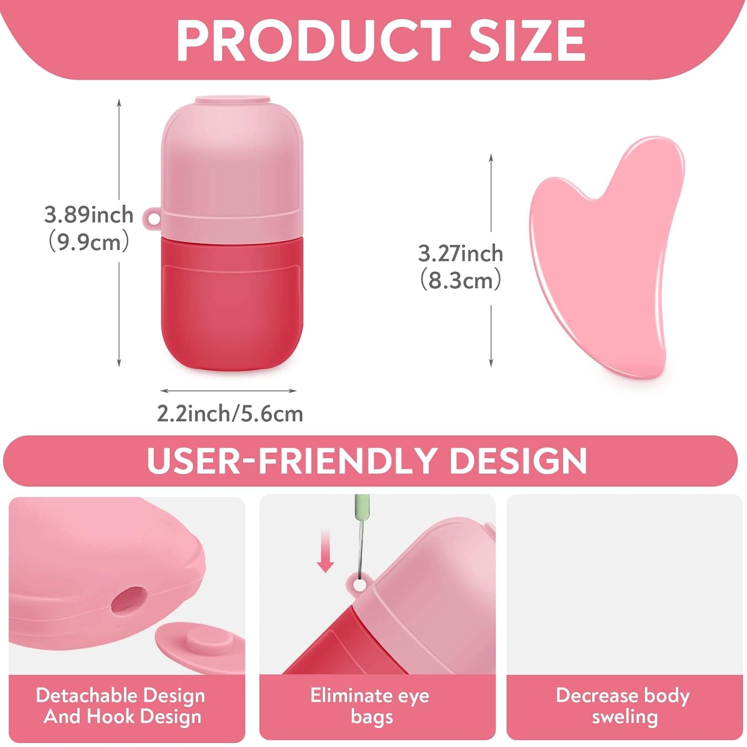 🐾【Ice Face Roller With Gua Sha 】:Facial ice rollers can be great for improving your skin condition, you can use whitening lemonade, green tea, stress relieving cucumber water, coconut milk etc to improve your skin, creatively tailor the recipe to your skin needs.The resin gua sha massage tool and ice roller together are effective in improving the skin. Gua sha is a traditional revitalizing technique that beautifies the skin and balances the human spirit.
