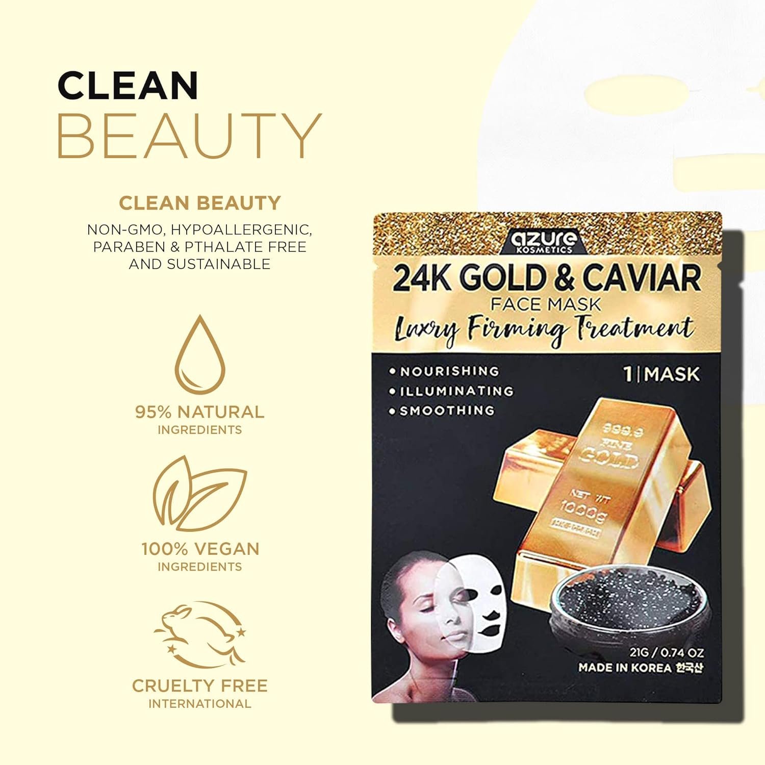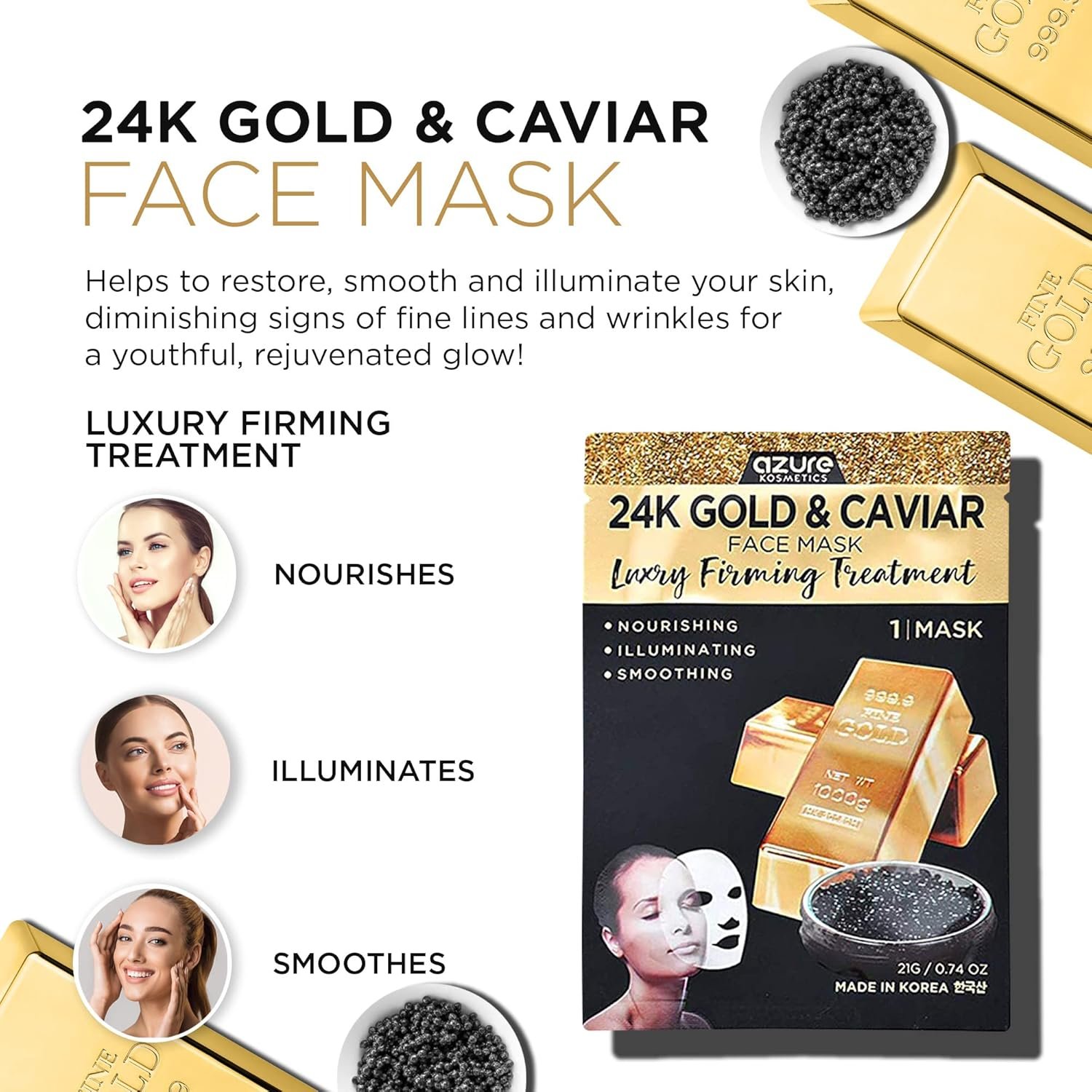 LUXURY BEAUTY THAT YOU DESERVE: Our brightening caviar and gold face mask contains a blend of 24K Gold and Caviar Extract to help smooth, nourish and hydrate your skin for a soft youthful glow. Our sheet masks help to diminish signs of fine lines and wrinkles for youthful, glowing skin.