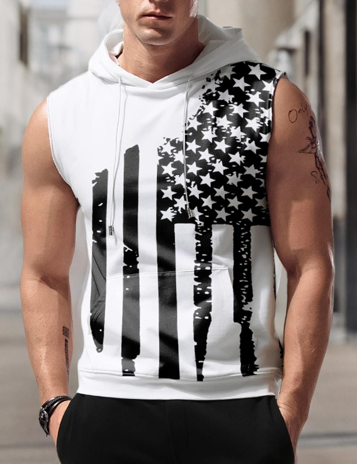 USA Flag Sleeveless Hoodie