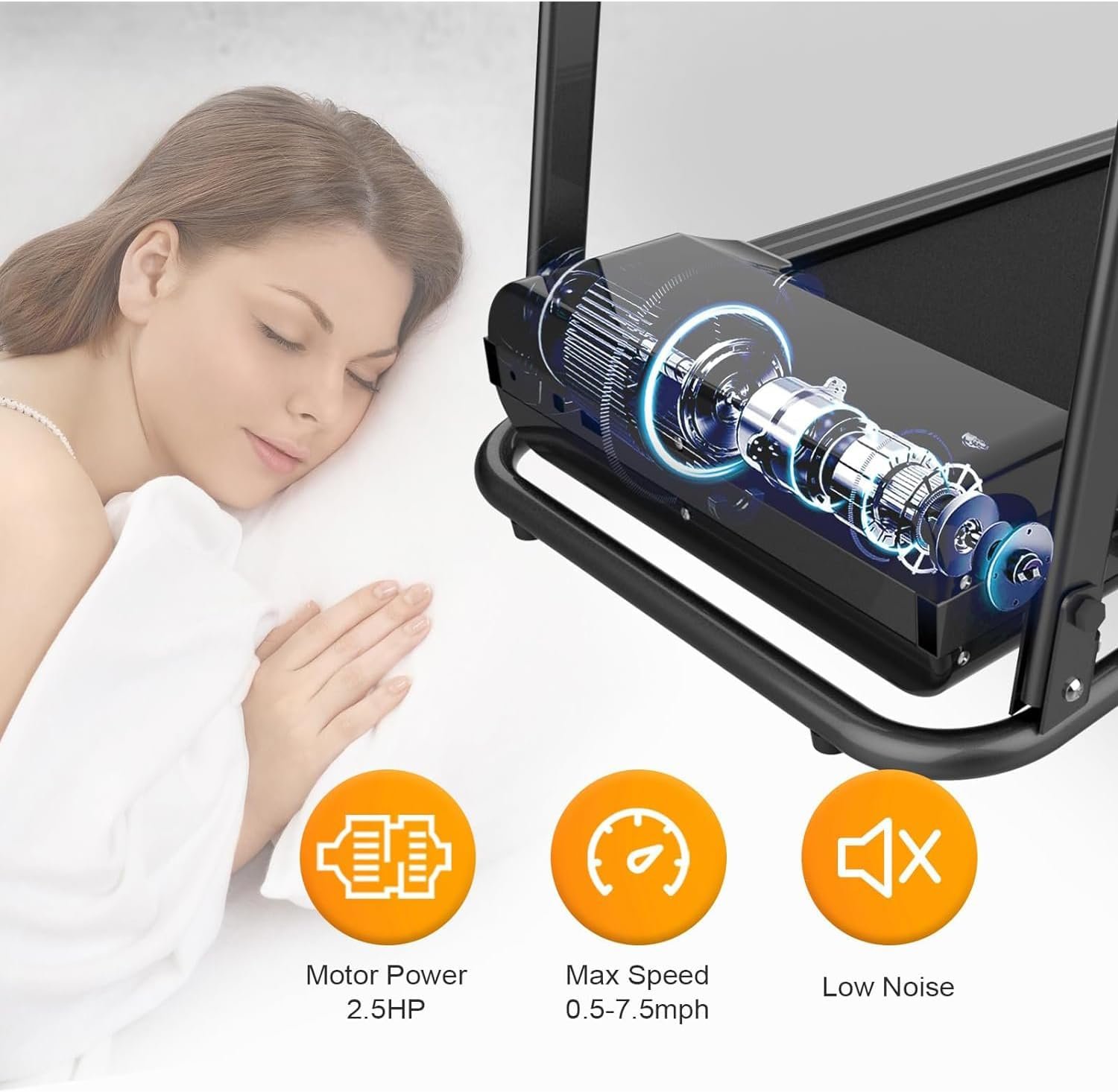 【2.5HP Quiet Motor & Knee Protection】: Powered by a 2.5HP motor, this treadmill operates quietly (below 50 decibels) and supports speeds from 0.5 to 7.5 MPH. The shock absorption system with 6 layers of cushioning protects your knees and joints during workouts.