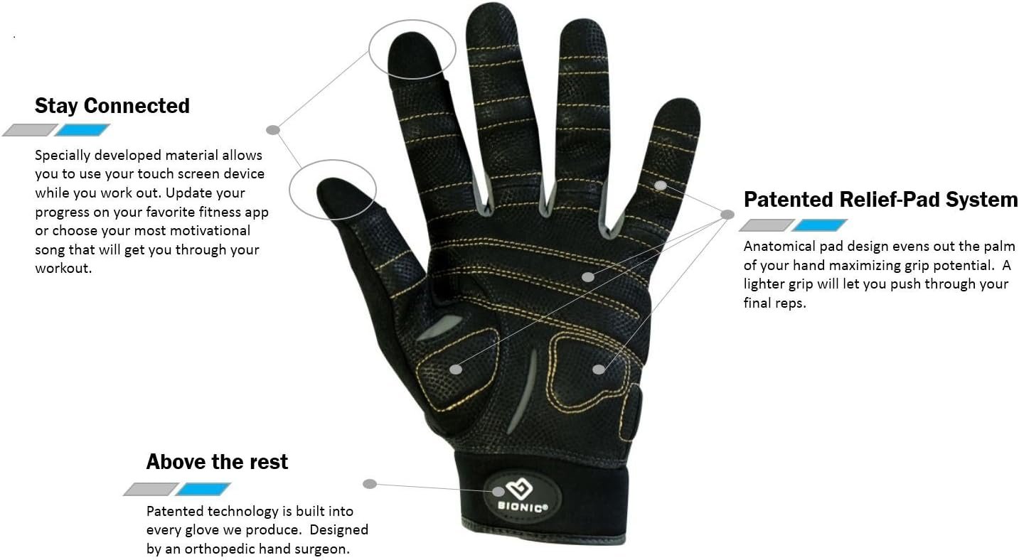 GET THE PERFECT GRIP – PATENTED DESIGN – The Bionic Glove pre-rotated finger design adapts to your hand’s natural curving motion. This patented design gives you a more effortless and comfortable grip that allows you to power through any workout.
