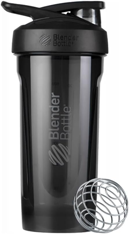 The BlenderBottle Strada push-button protein shaker provides sleek style and ultimate ease. The bottle’s a spill-proof locking flip cap opens with the push of a button and closes with a simple snap. A flexible, ergonomic carry loop provides a comfortable hold. The patented mixing system utilizes the BlenderBall wire whisk to mix even the most stubborn protein powder, and a rounded base ensures a smooth blend. Made from durable, stain- and odor-resistant Eastman Tritan plastic, the BlenderBottle Strada is simplicity at its best. Leak proof; top-rack dishwasher safe; BPA and phthalate free..
