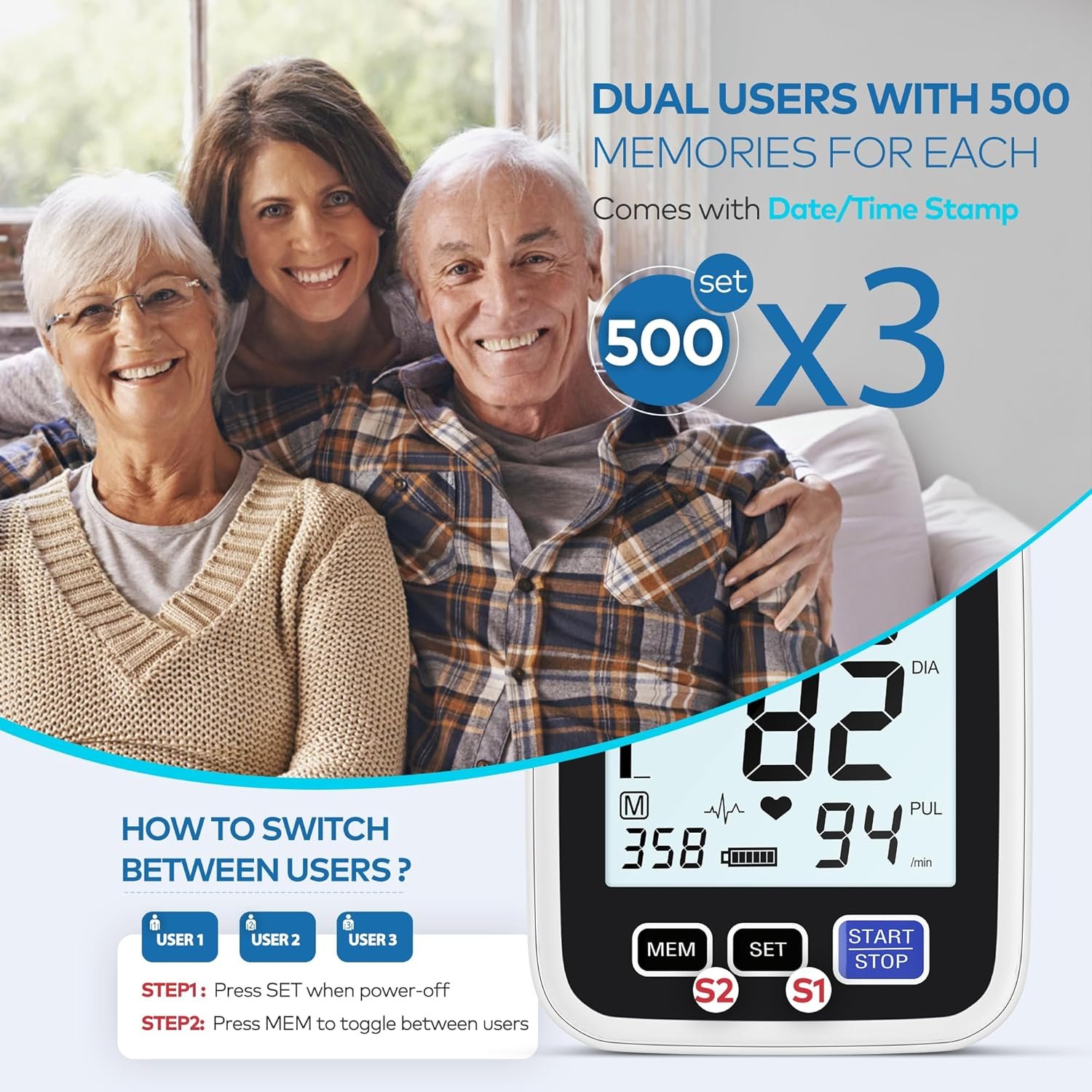 Share Love with Loved Ones, Enjoy Technology! – AQESO BP monitor features a special 3-user mode with a memory storage capacity of 3×500 sets, which is the highest amount available in the market. With the ability to track blood pressure data by specific date and 12-hour time, manual recording of measurements is no longer necessary. AQESO BP machine also comes with crush-resistant packaging to protect the machine, making it a perfect gift for elderly family members.