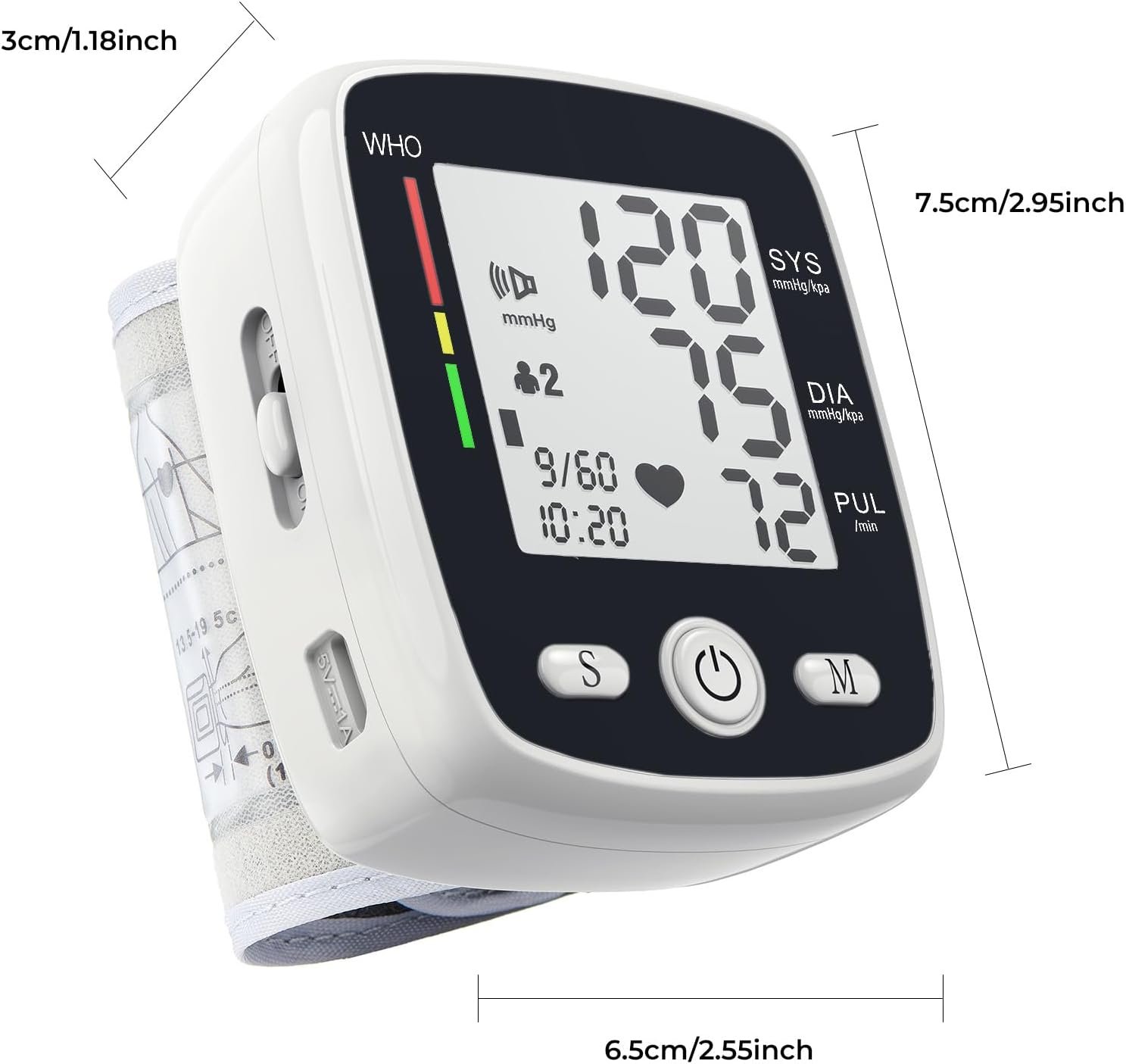 Adjustable Blood Pressure Cuff: The wrist strap can be adjusted to fit wrists ranging from 5.3 inches to 7.7 inches, fits most adults, brings a comfortable measurement experience