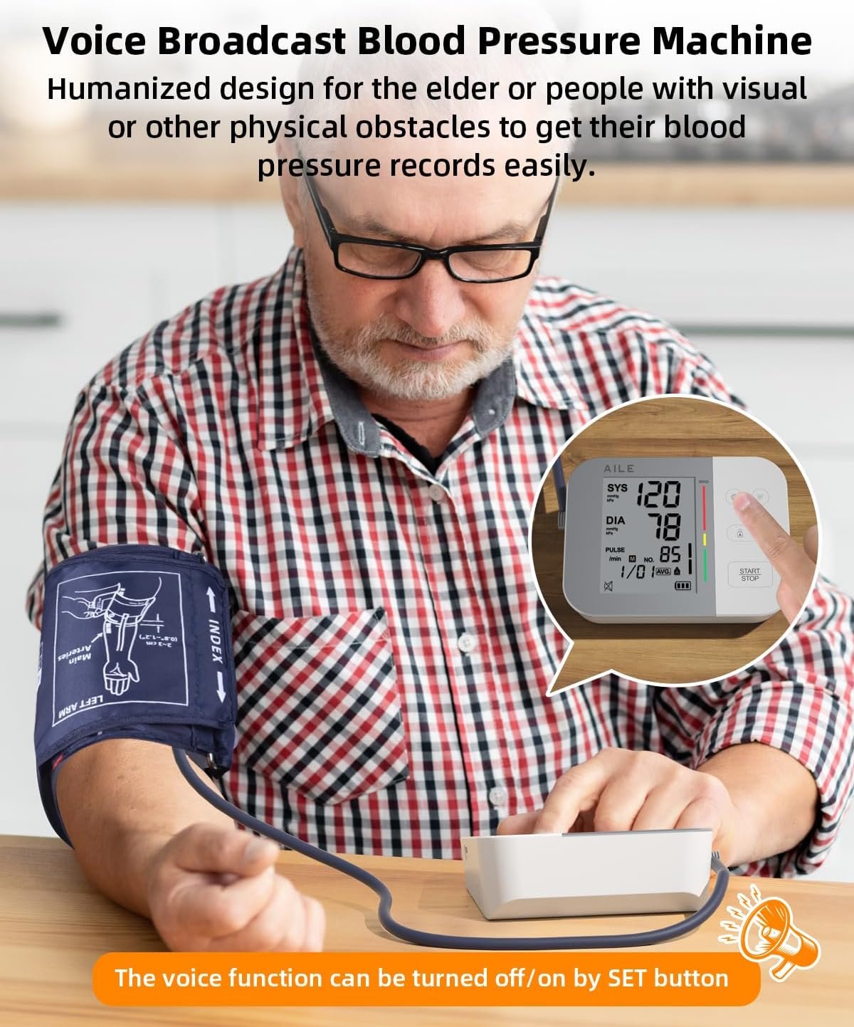[Voice Broadcast & LCD Display BP Monitor] With the more humanized design, voice broadcast function, is very helpful for people with visual or other physical obstacles, or older people who need to manage their health risks. After each measurement, it will accurately report your systolic, diastolic, and heart rate values. Attention: the voice can be turned off/on (Please see the Quick Start Guide/Video guide/Q&A)