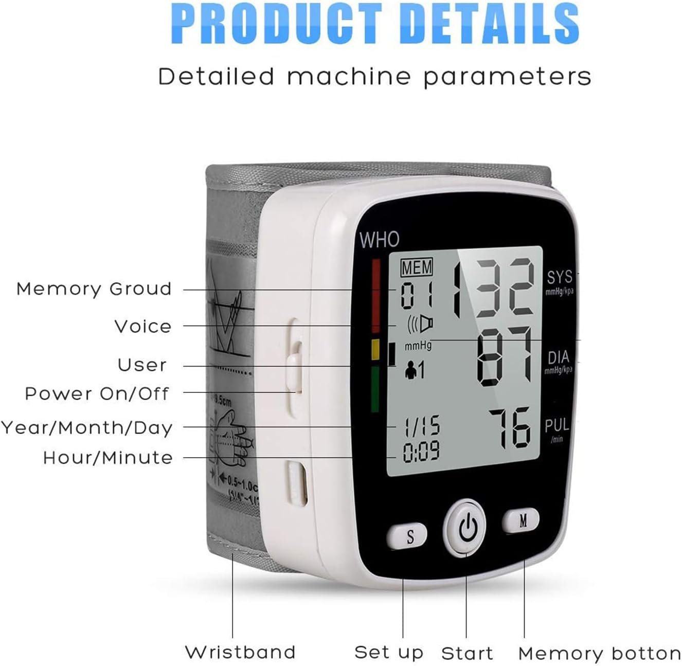 Wrist Electronic Sphygmomanometer: Comfortable and Simple to Adjust, the Blood pressure cuff fits wrist circumferences from 5.4 inches to 10.3 inches, pre-formed cuff make sure you can easy to wear it by yourself.