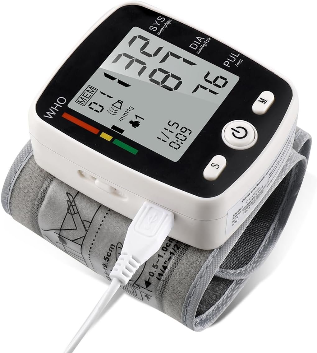 Wrist Electronic Sphygmomanometer: The Portable wrist cuff blood pressure monitor and USB Rechargeable design, save your space and memory, you can bring it anywhere and recharge it anytime .Please recharge it full first before using.