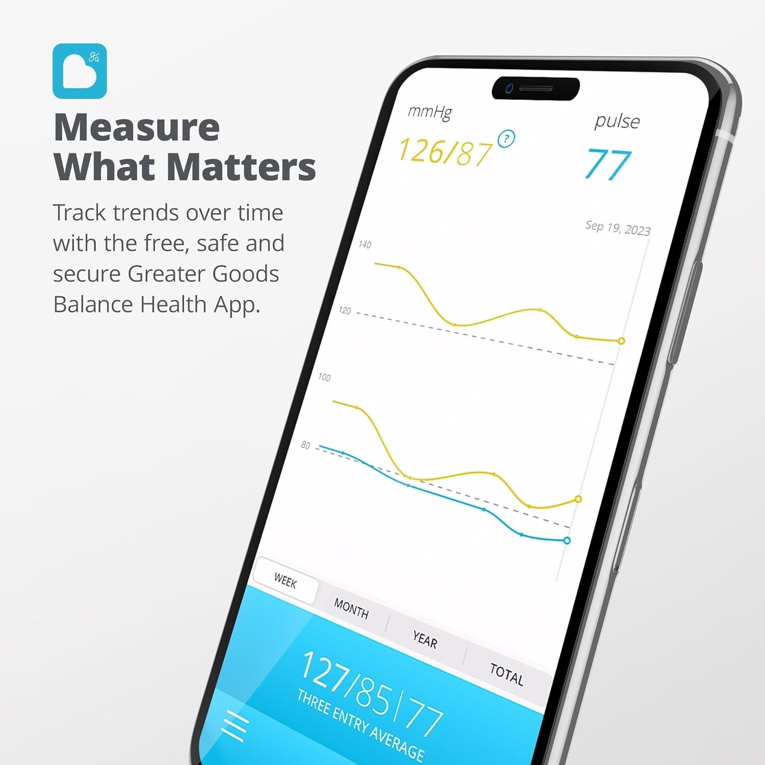 𝗔𝗽𝗽 𝗜𝗻𝘁𝗲𝗴𝗿𝗮𝘁𝗶𝗼𝗻: Sync your data with the GG Balance Health app for unlimited storage, tracking, and sharing
