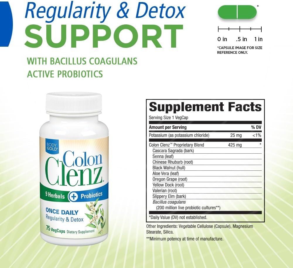 When your digestive system slows to a crawl and things aren’t moving as expected, gentle, dependable Body Gold Colon Clenz goes to work fast. This effective overnight herbal formula helps support healthy elimination and remove waste and impurities so you feel light, refreshed and renewed.