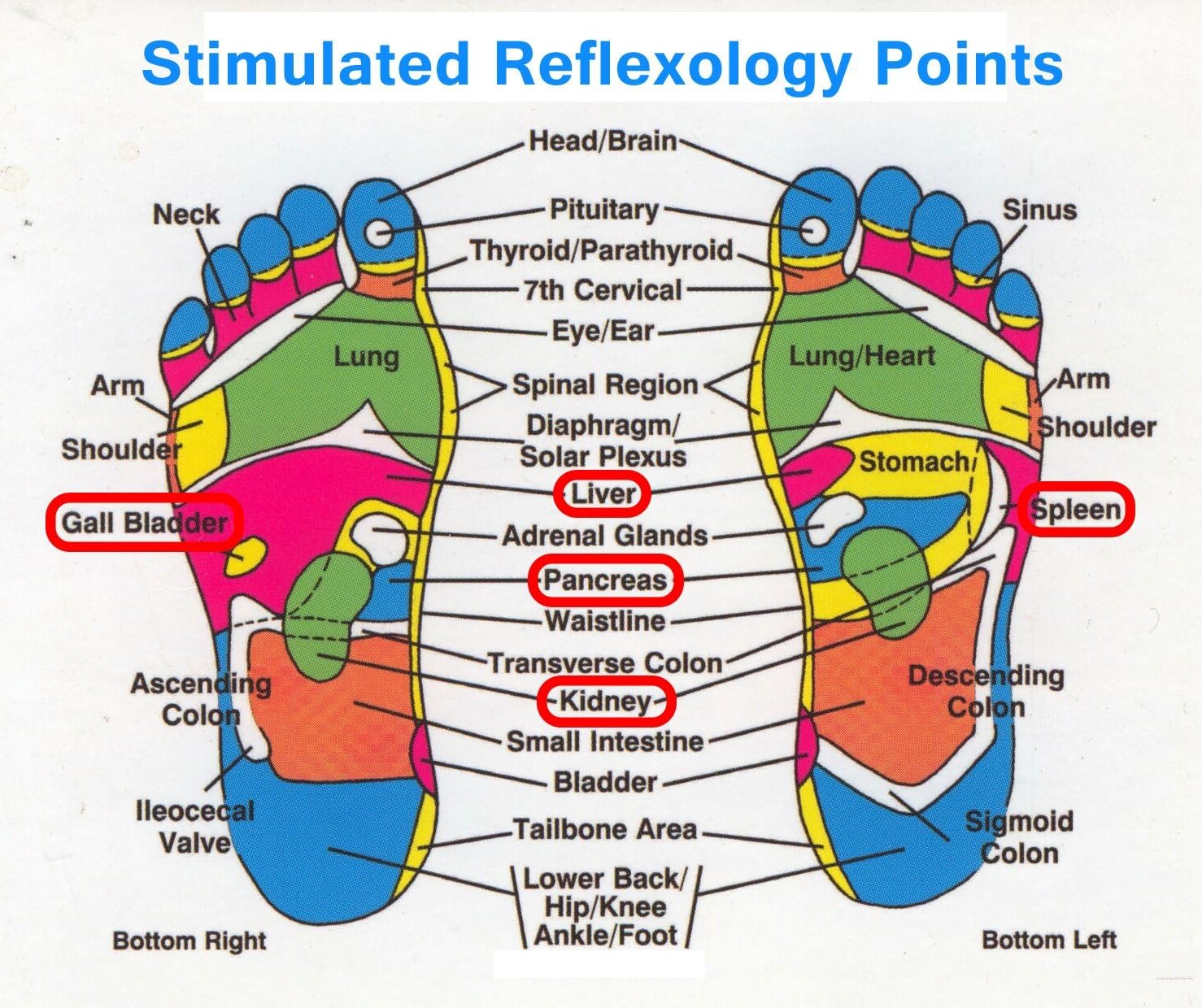 The Solution: Using reflexology points on your feet, you can trigger the body to cleanse and alleviate some of these symptoms, and improving it’s efficiency.