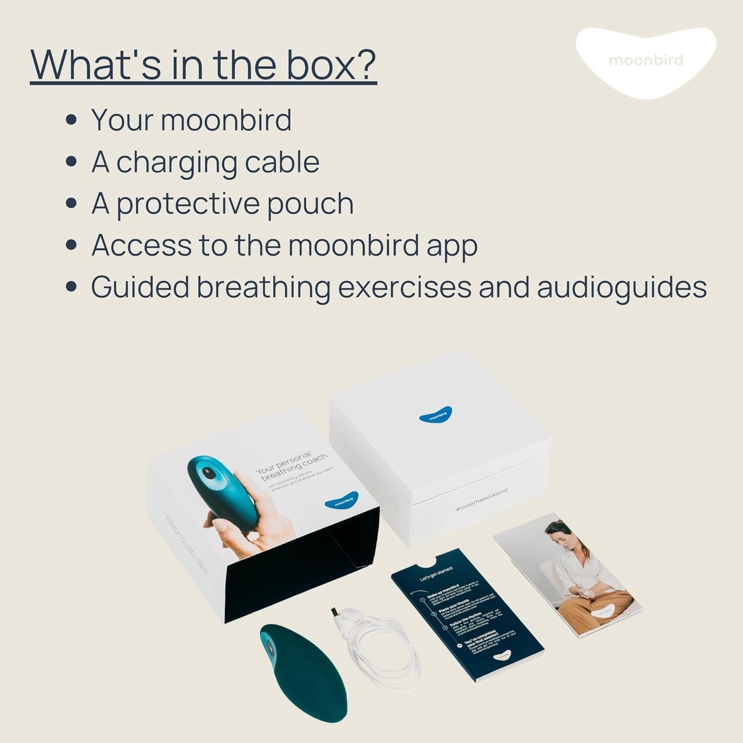 WHY MOONBIRD – Your breathing is the remote control of your nervous system. Conscious, calm breathing lowers your stress levels and helps you relax and fall asleep quickly and effectively.