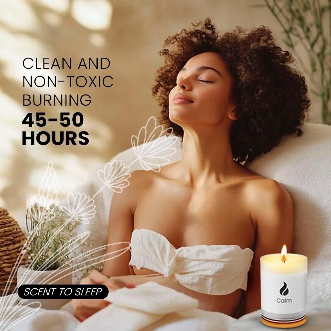 CALMING BOTANICALS – Create a serene atmosphere with our soy wax candle, featuring a soothing blend of lavender, basil, and jasmine, known for promoting relaxation, restful sleep, and stress relief. Enhanced with subtle notes of cinnamon, musk, rosemary, and lily of the valley, this non-toxic calming candle offers 50 hours of calming burn time, perfect for unwinding and creating a peaceful environment.