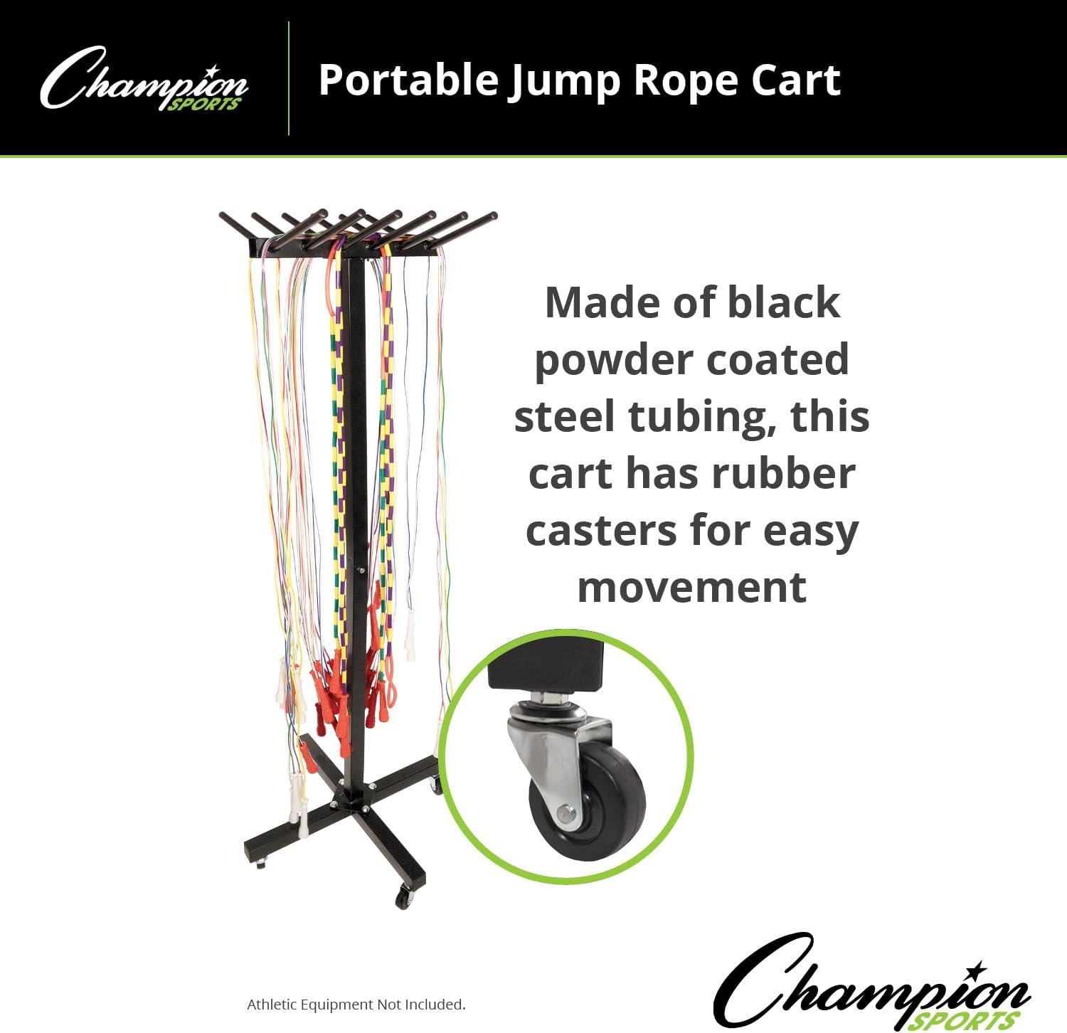 The Champion Sports Portable Jump Rope Cart is a must-have for any gym or fitness facility. Designed to eliminate the chaos of tangled jump ropes, this cart features twelve 8-inch posts capable of holding over 200 ropes. Constructed with durable black powder-coated steel tubing and equipped with rubber casters for easy maneuverability, this cart offers efficient storage and transportation. Measuring 23″L x 23″W x 65″H, it provides ample space to organize jump ropes of various lengths, ensuring a tidy and accessible equipment area.