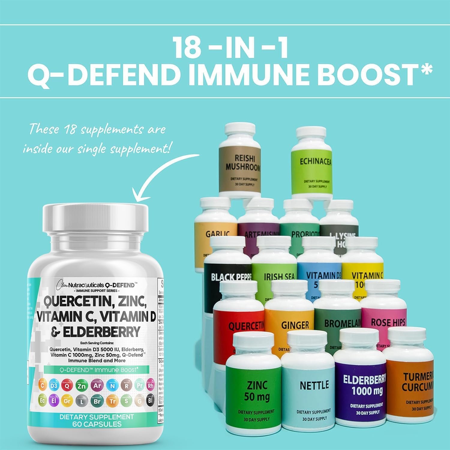 Q-Defend Immune Blend – Don’t settle for products that only supply the basic immune supplements such as vitamin C, vit d3 and elderberry. Our signature Q-Defend immune blend contains these essential ingredients plus turmeric, echinacea, ginger root, garlic powder, nettle, reishi mushroom, rose hips, bromelain, and even irish seamoss! Our powerful formula offers 18 hand-selected ingredients that could help improve your overall health in a variety of ways!