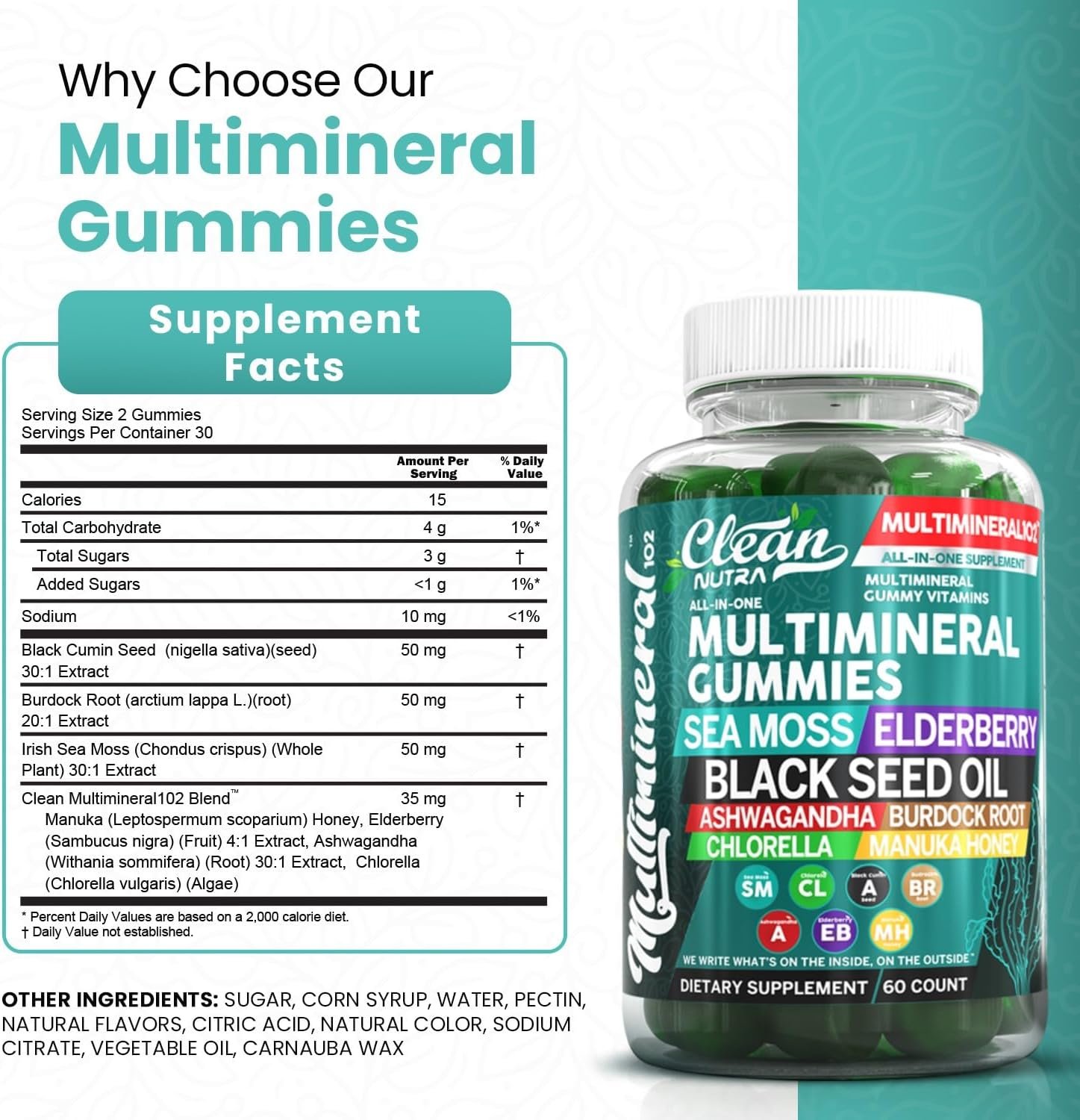 Clean Sea Moss Gummies | Black Seed Oil Ashwagandha, Elderberry, Burdo…