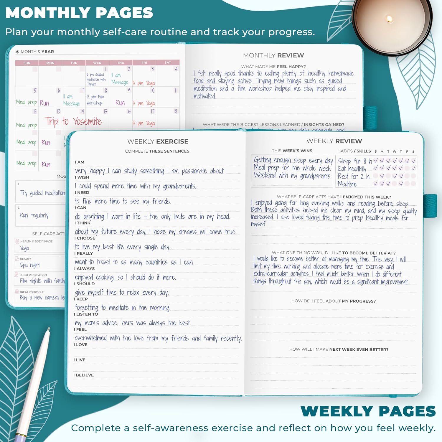 Accompanied by a quick-start illustrated guide, navigate your new self-care planner with ease and unleash its full potential.