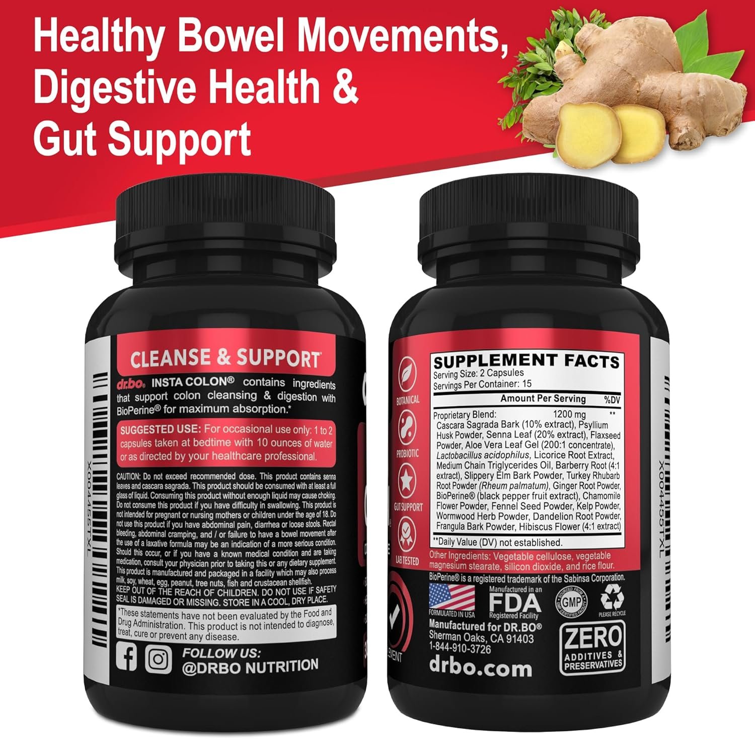 15 Day Colon Cleanse Detox & Weight Flush: Flush intestinal bowel waste fast with Dr. Bo Insta Colon cleanser; natural detox pills for bowel cleanse detox, stomach bloating loss & poop waste weight