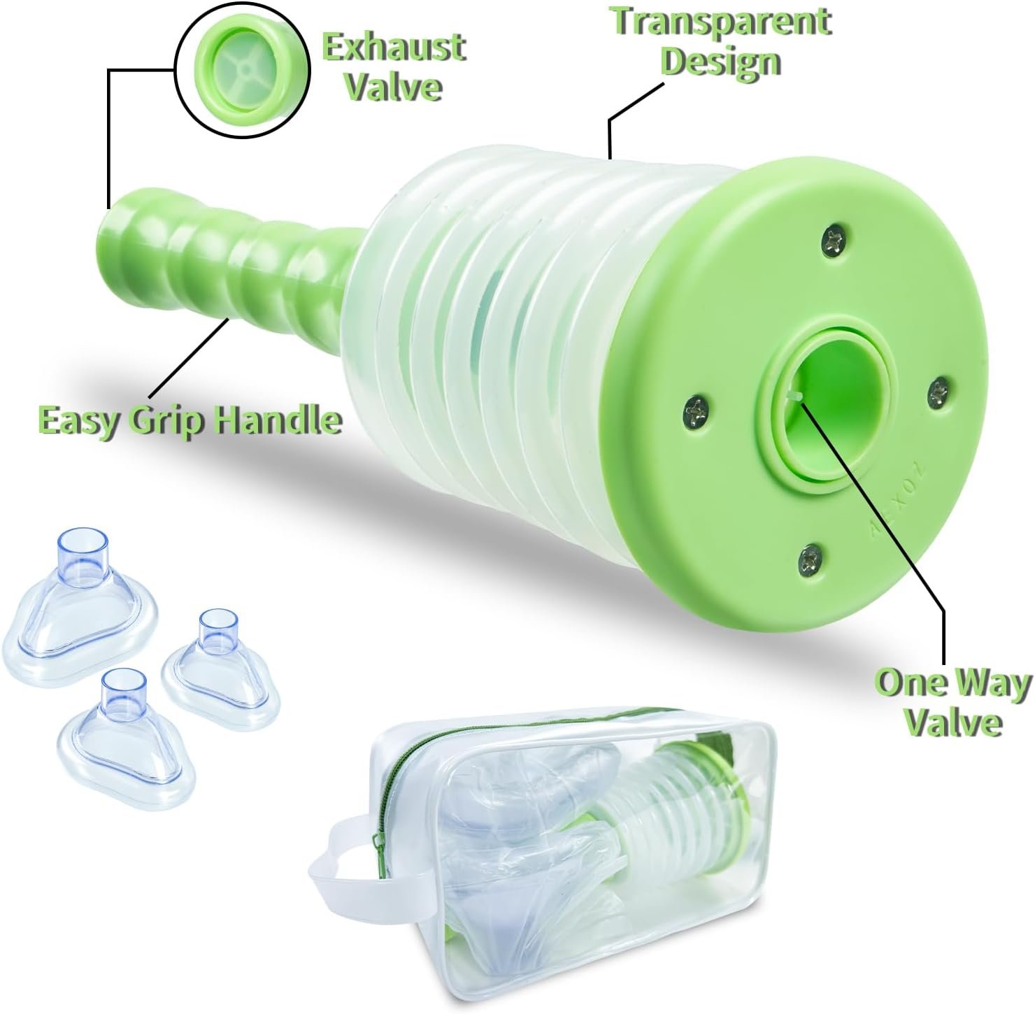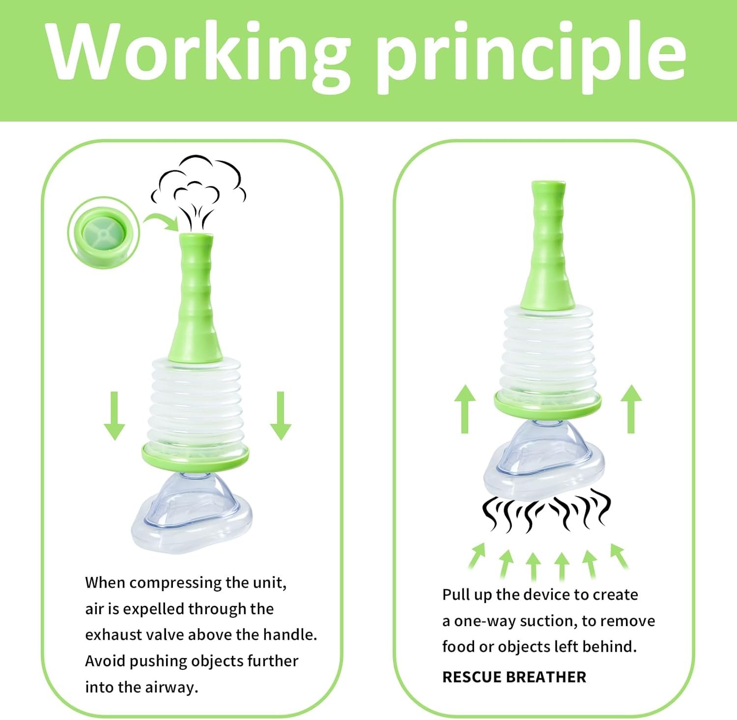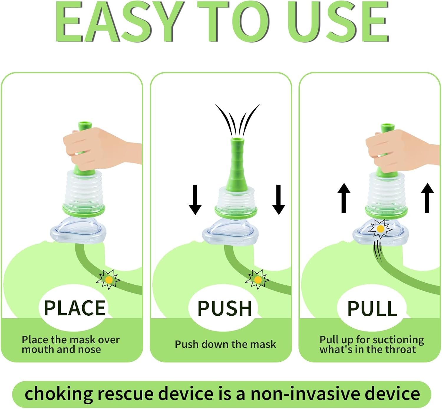 Comprehensive Kit: The Choking Rescue Device comes complete with three masks – two for adults (one for immediate use, one for practice) and one for kids, along with a practice manual. This comprehensive kit caters to both adults and children, ensuring users are well-prepared and familiar with device operation before emergencies arise.