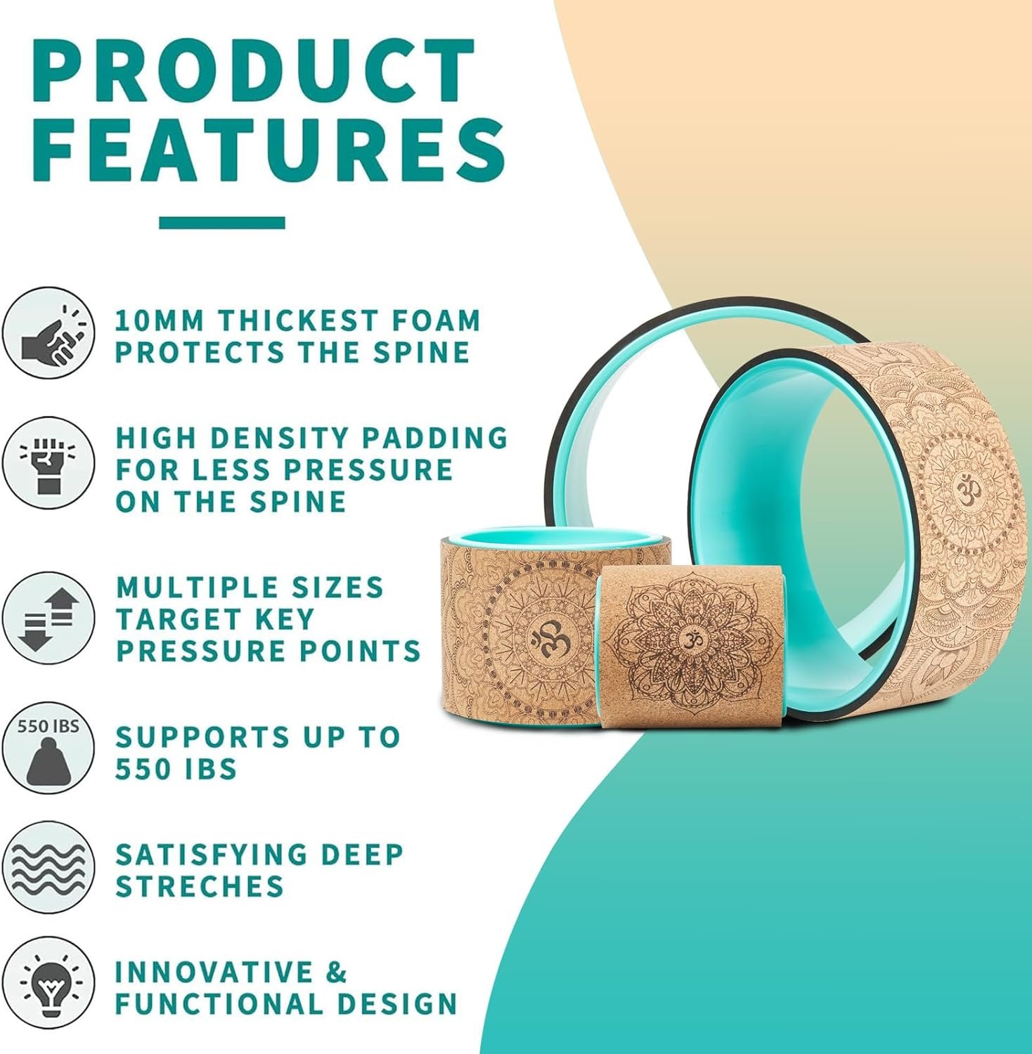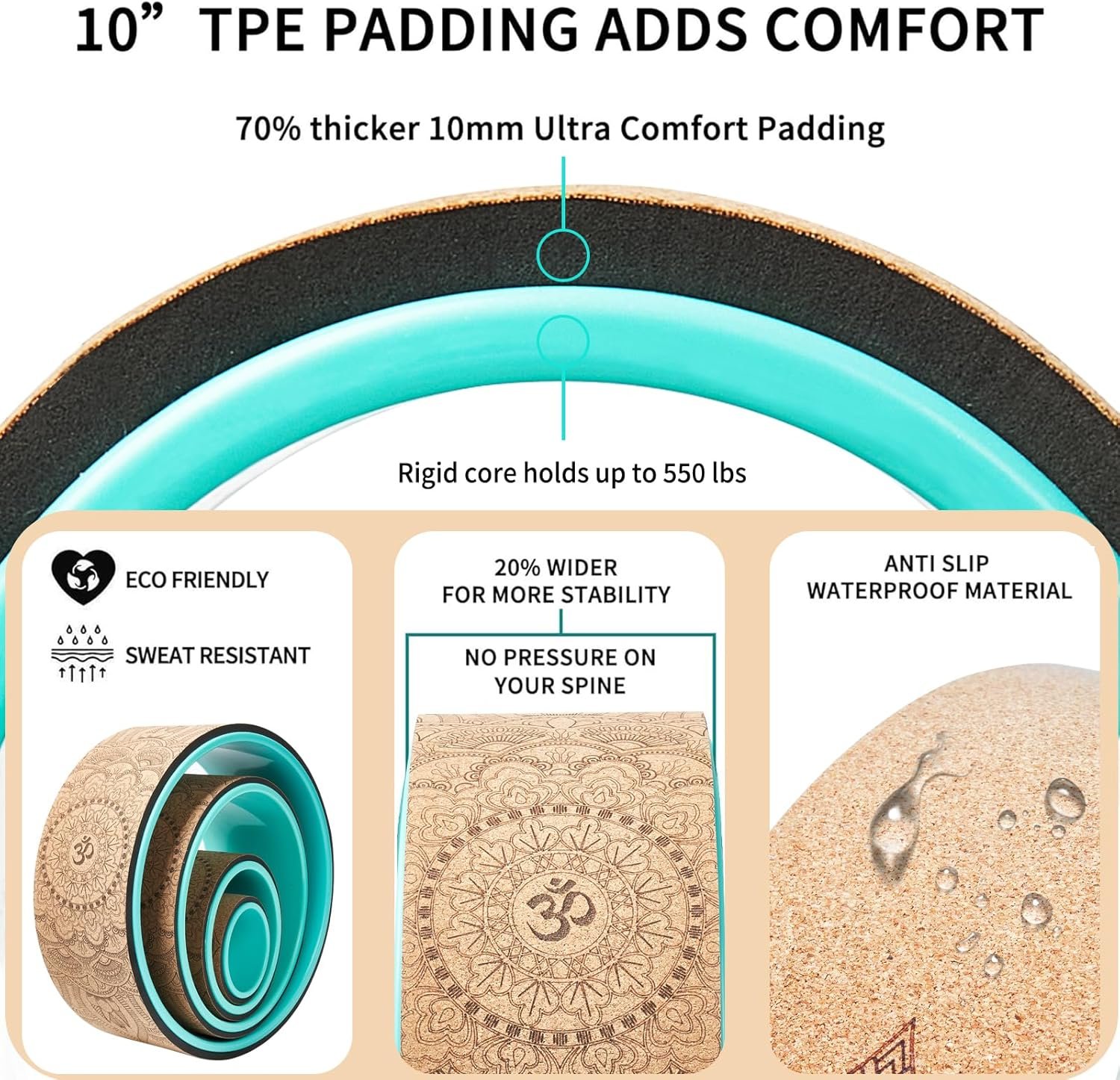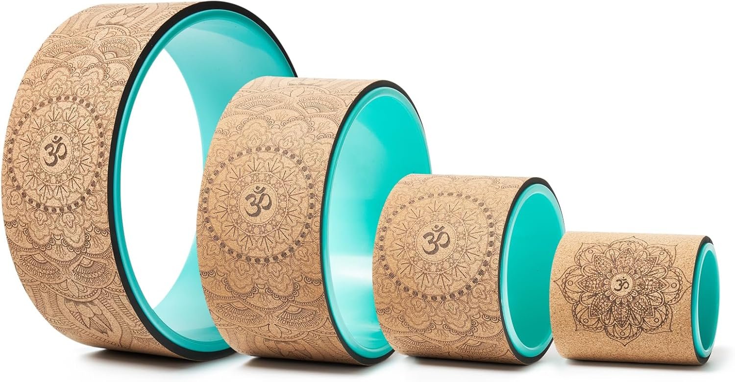 Cork Yoga Wheel for Back Pain Relief, Back Roller Wheel with Extra Cushion, Wider & Thickest Foam, Stretches and Strengthens Core Muscles.