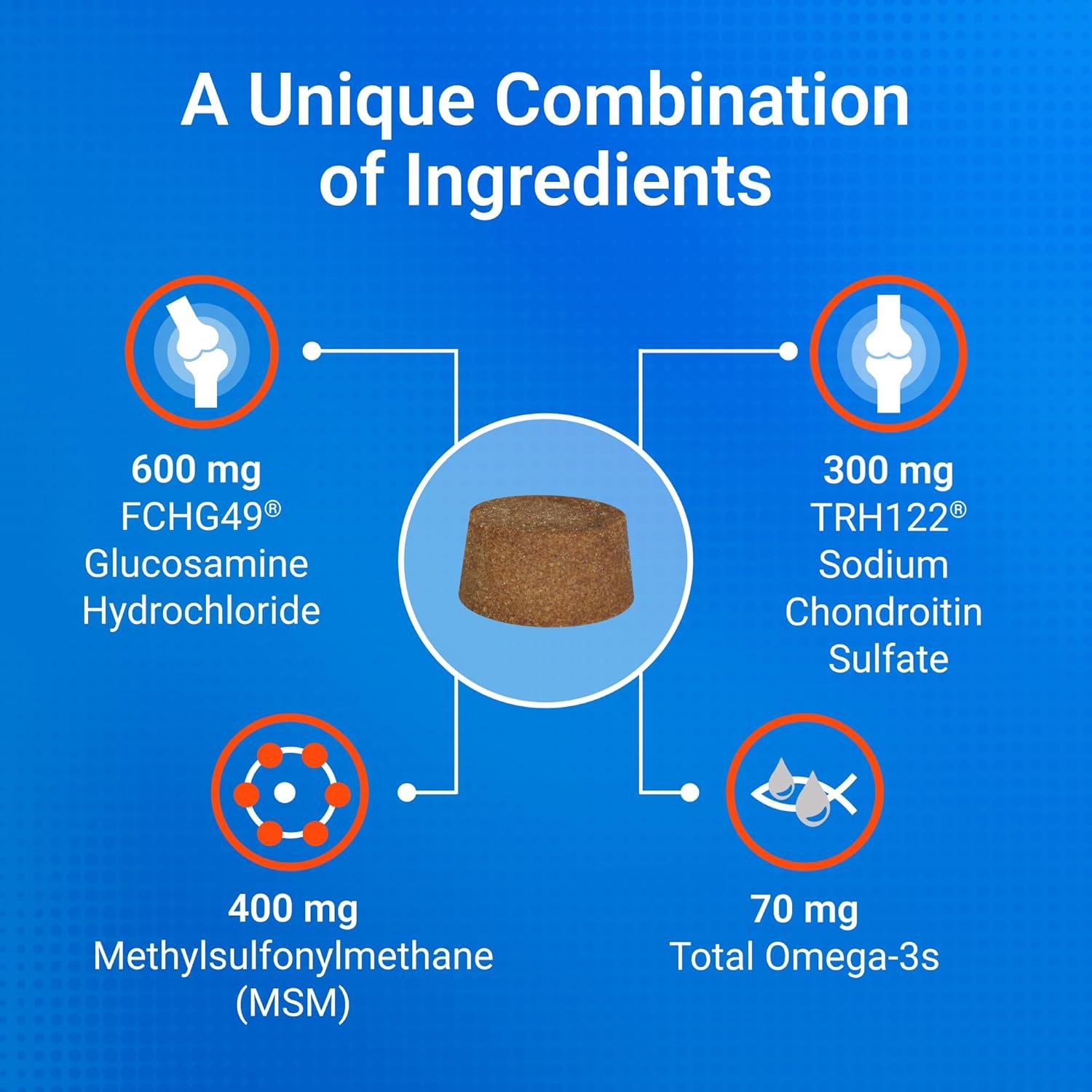 Joint Health Support for Dogs: Cosequin, the veterinarian recommended retail joint health supplement brand, contains glucosamine hydrochloride, sodium chondroitin sulfate, and methylsulfonylmethane (MSM) that helps support healthy cartilage