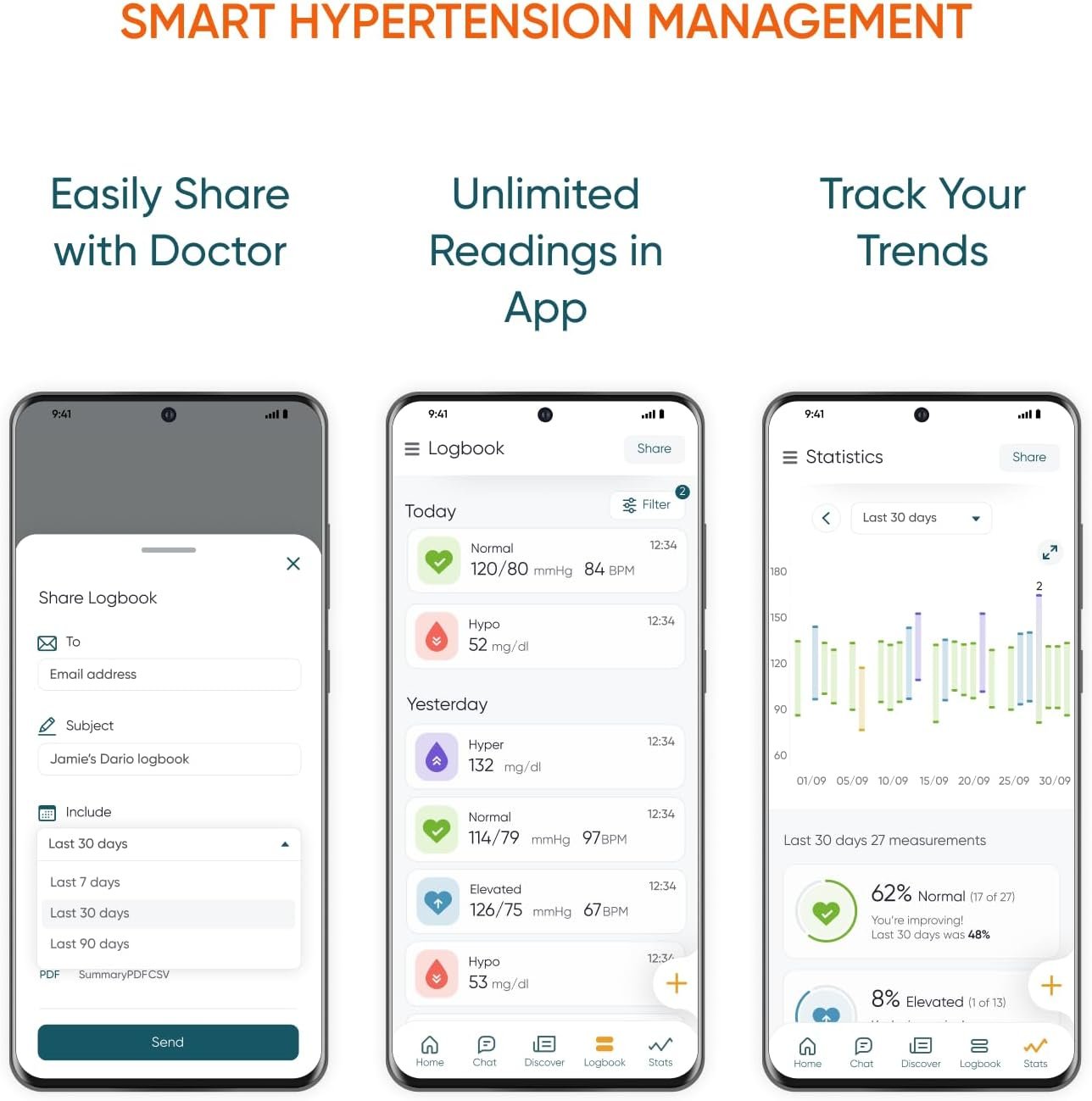 Easy to Read Unlimited Readings on App Easily Share with Doctor Dual User Mode