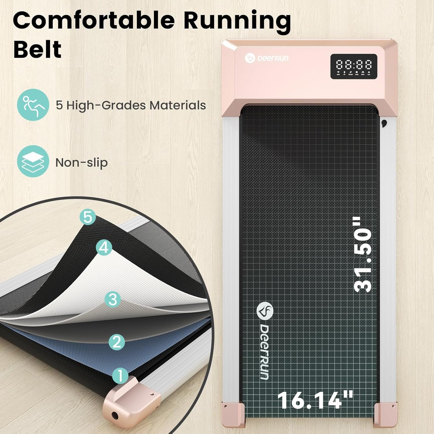 【Anti-Slip & Shock-Absorbing】Our walking pad treadmill features a 5-Layers Wear-resistant Non-slip running belt to absorbs movement impact and to ease the strain on your knee and joints, catering everyone a safer and smoother workout experience. Perfect gift for Christmas, fitness enthusiasts, elders, home workers and people who love healthy lifestyle.