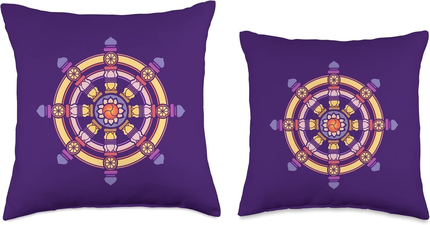 Product Summary: Dharma Wheel Meditation Lotus Chakra Yoga Dharmachakra Karma Throw Pillow