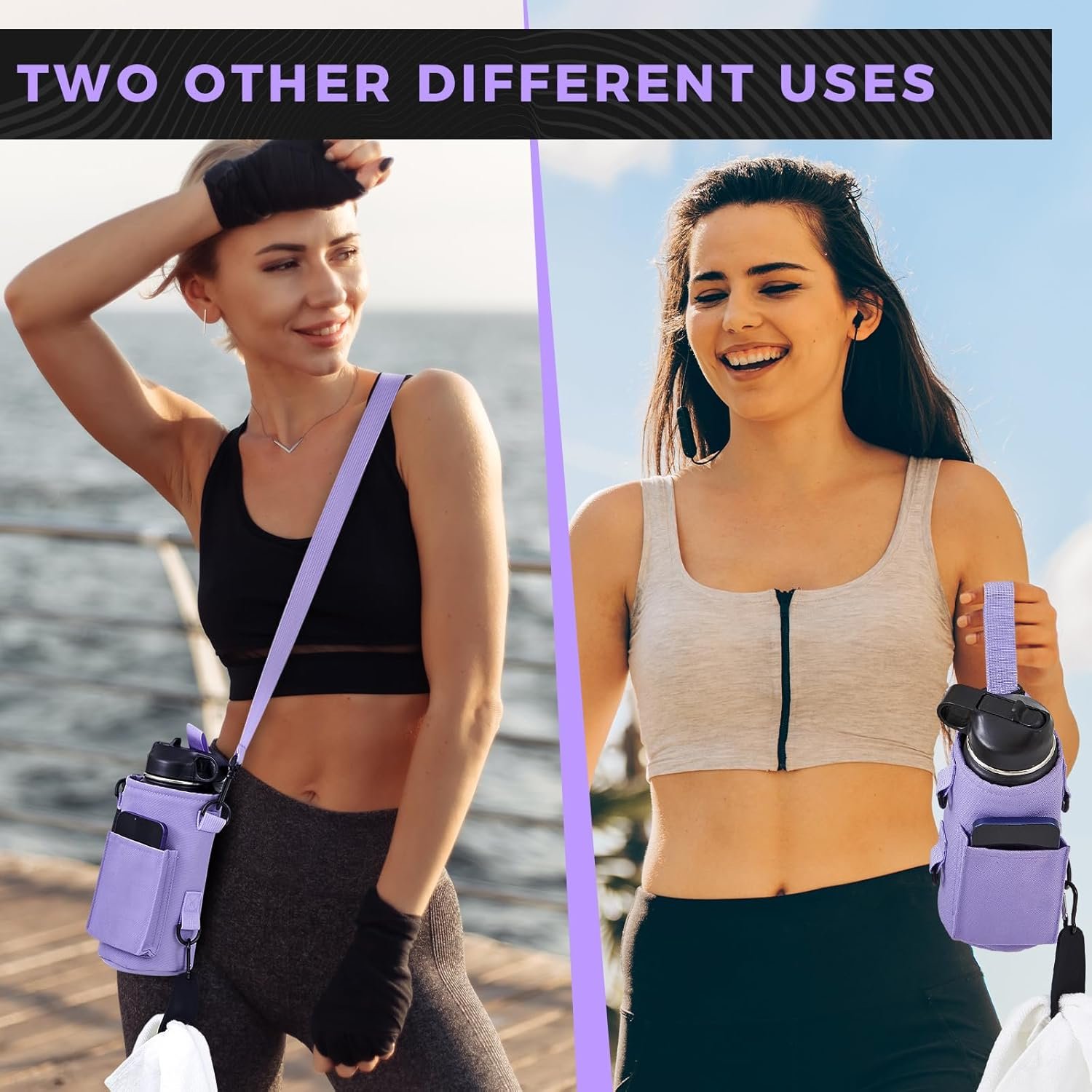 Adjustable Straps: armed with an adjustable shoulder strap and handle strap, this water bottle phone holder for gym ensures easy portability; You can conveniently carry your water bottle wherever you travel, making your trips smoother and more hassle free