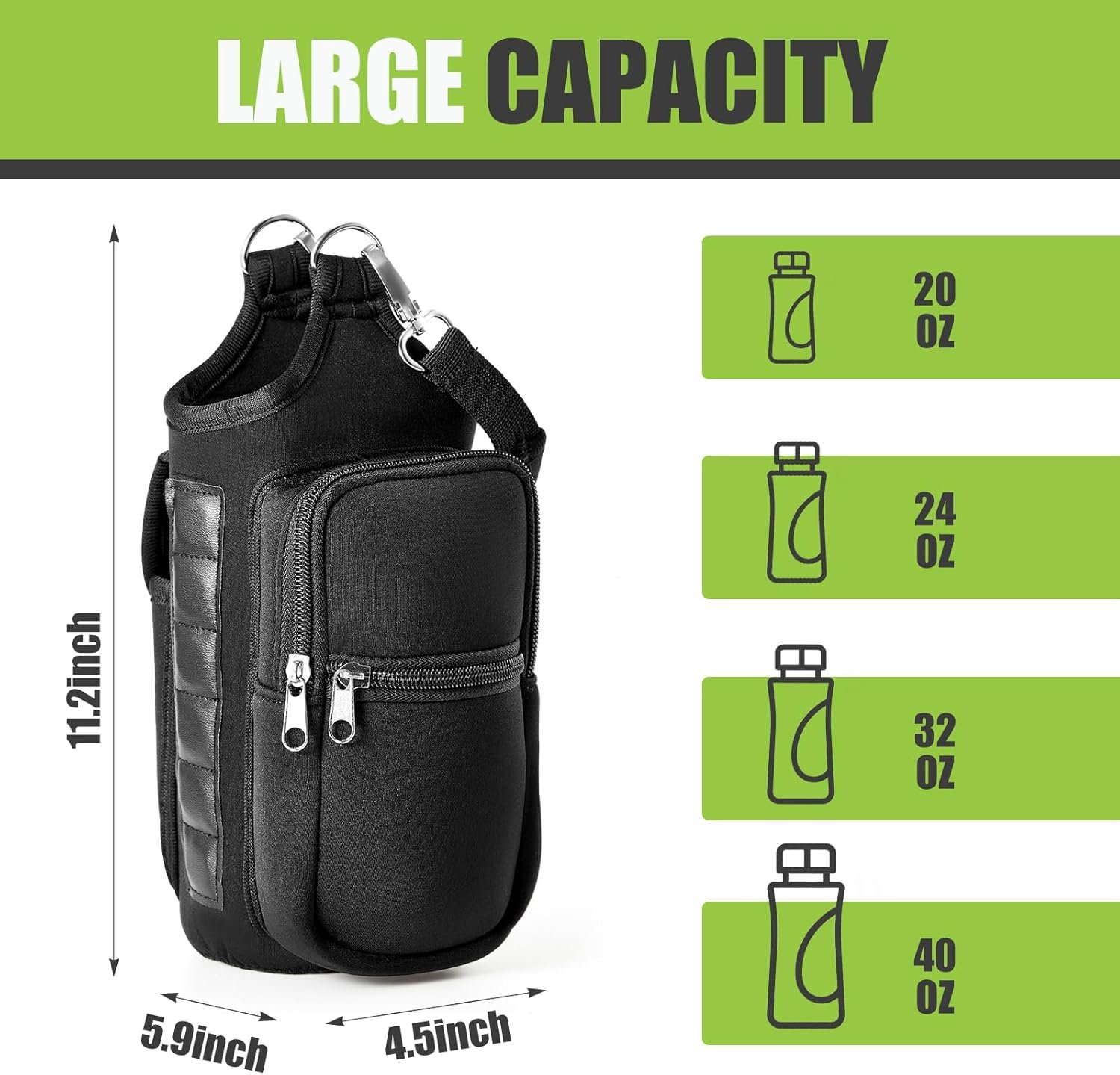 Quality Material: designed to fit most standard water bottles from 18oz to 40oz, crafted from soft neoprene, this material is soft and protects your items from any potential damage; Additionally, the fabric is very durable, allowing for long term use