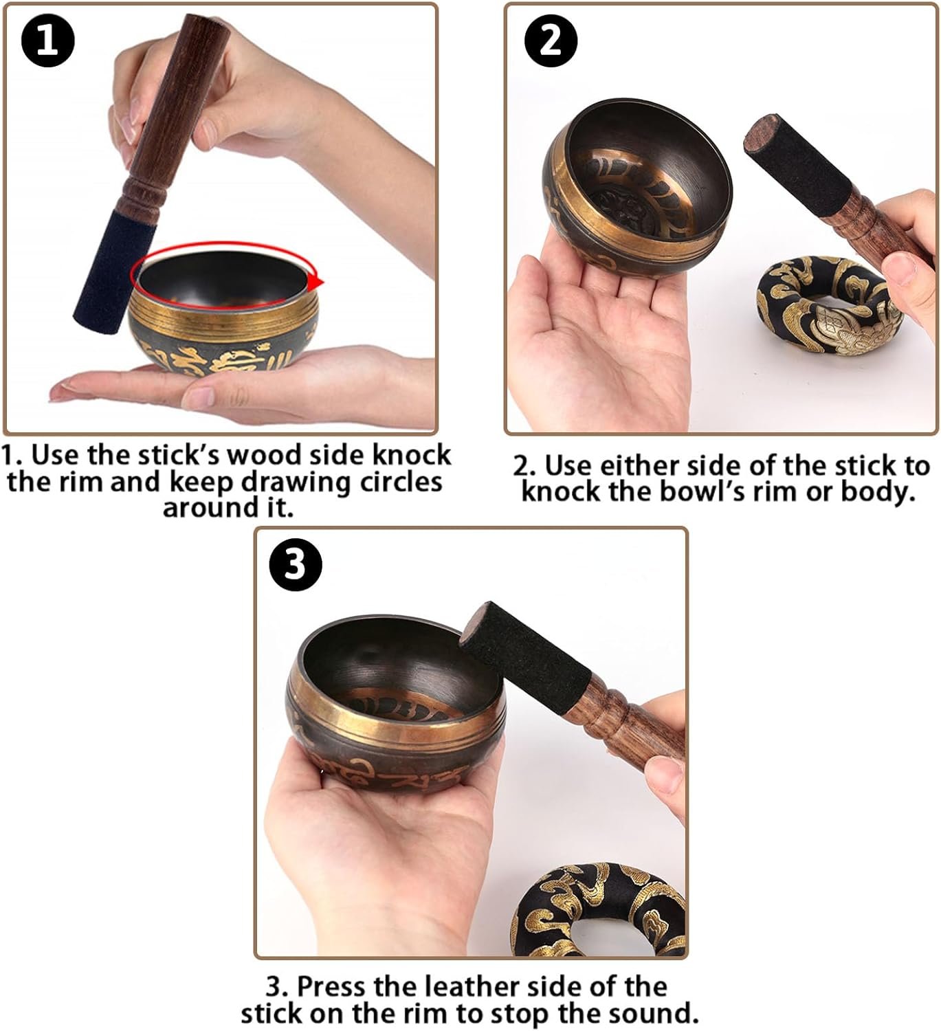 EASY TO USE – You can gently tap the mallet to the outside and inside edges of the meditation bowl or play it around the rim to produce the resonant sounds and deep vibrations that can relax your mind and release stress.