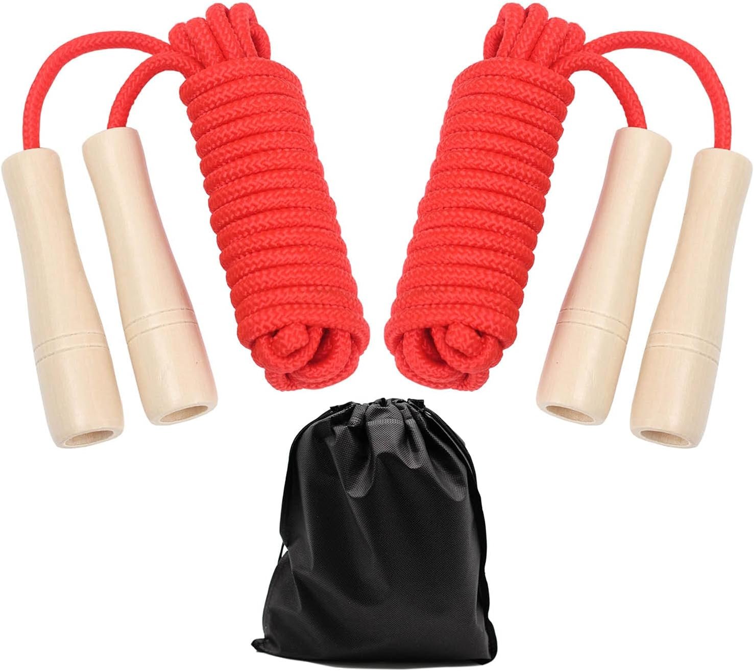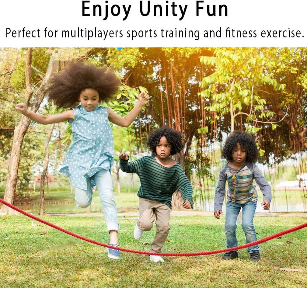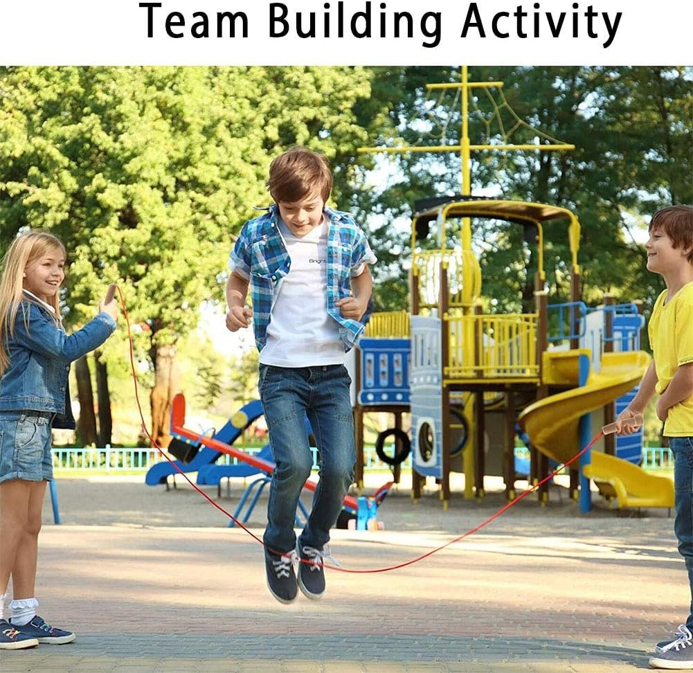 [Adjustable, Easy To Use] This jumping rope for kids is 16 foot long allowing for 2 or 3 kids to jump and have fun simultaneously. If preferred, rope length can be adjusted for individual use. Easy to carry in your bag or backpack. Use them at school, backyard, playground, picnic, etc.