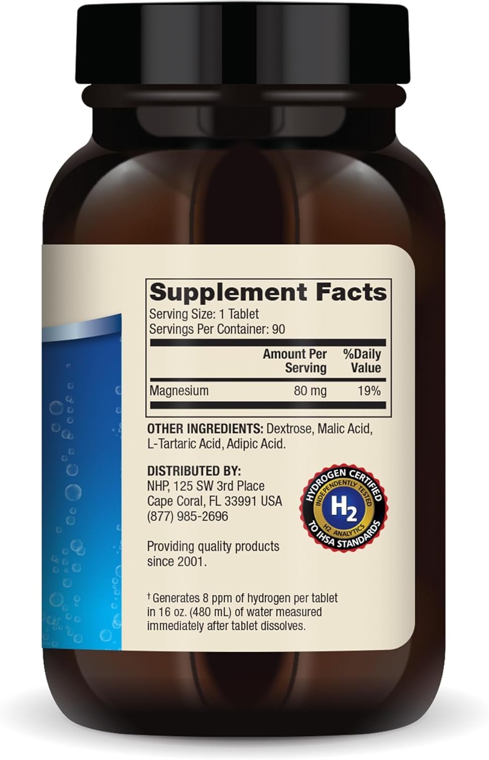 Utilizing a specialized, validated process, our H2 Molecular Hydrogen tablets create up to 8 ppm concentration of H2 in 480 mL of water