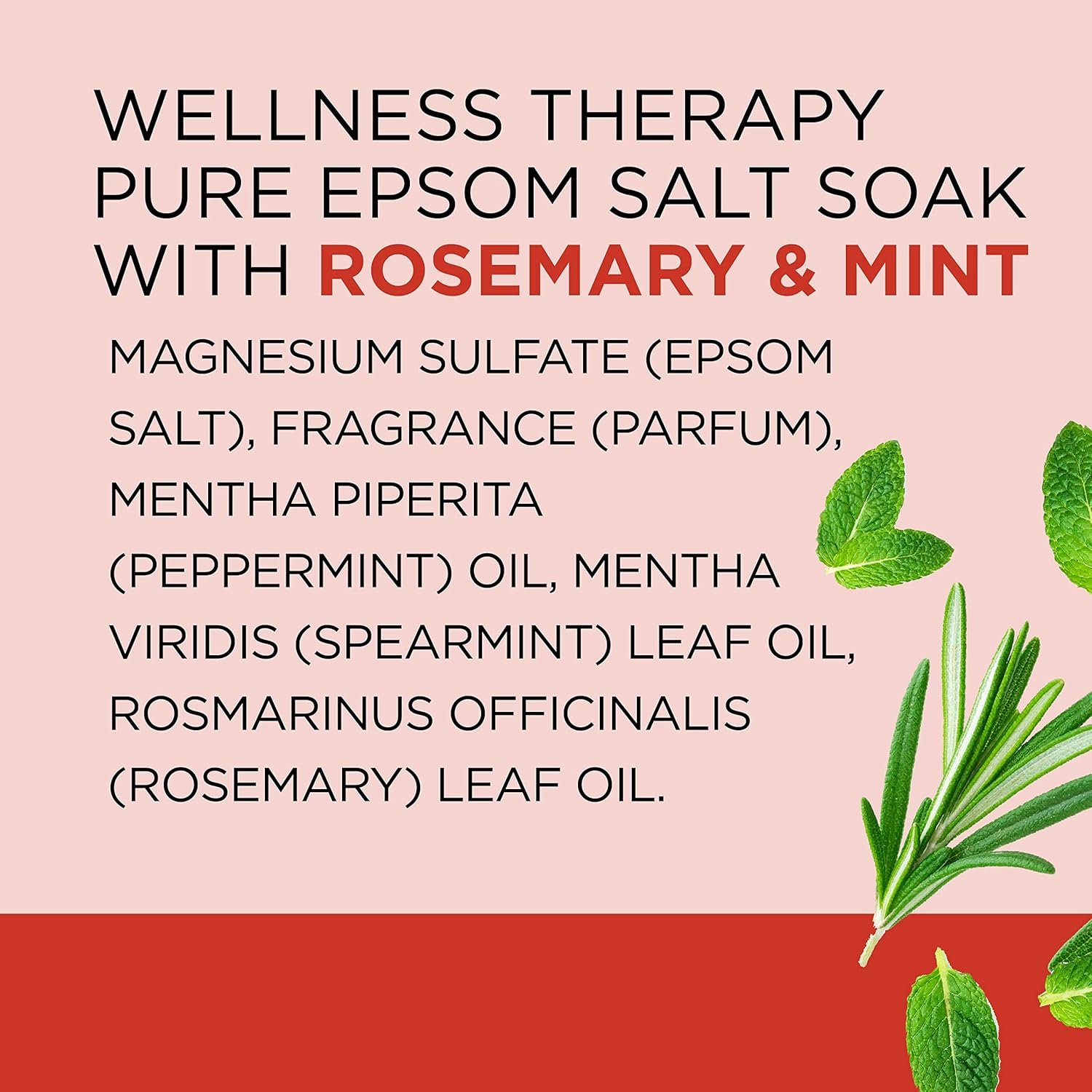 Soak in Dr Teal’s Wellness Therapy with Rosemary & Mint Pure Epsom Salt Soak for a comforting, soothing bath. Pure Epsom Salt (Magnesium Sulfate) helps to ease aches and soreness while refreshing skin’s appearance and rosemary, spearmint, and peppermint essential oils refresh your mind. Dr Teal’s products are infused with essential oils to relax, replenish and rejuvenate your mind and body. Take a moment for yourself tonight so you can feel your best tomorrow.
